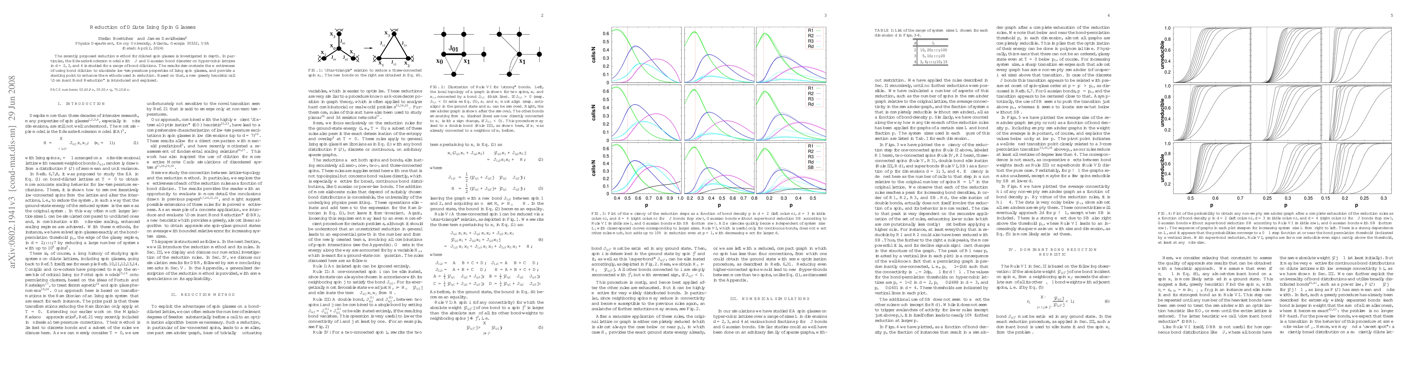 This paper investigates a reduction method for diluted Ising spin glasses, focusing on the Edwards-Anderson model with Gaussian disorder across different dimensions. The study reveals that bond dilution effectively reveals low-temperature properties and introduces a new heuristic called "Dominant Bond Reduction" to improve reduction techniques.