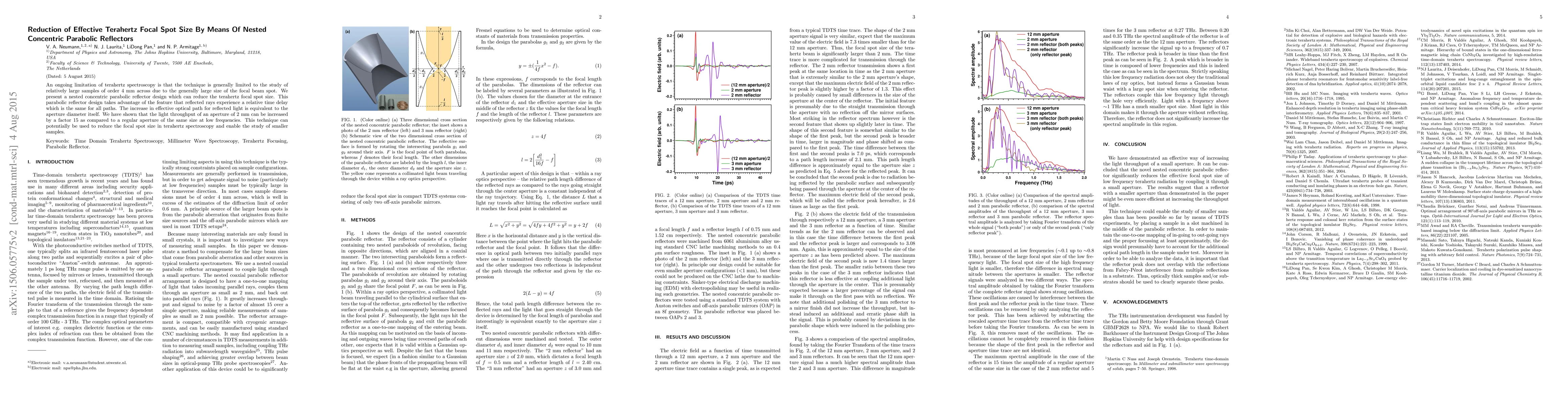 Researchers developed a terahertz spectroscopy technique using nested concentric parabolic reflectors to reduce focal spot size, enabling the study of smaller samples.
