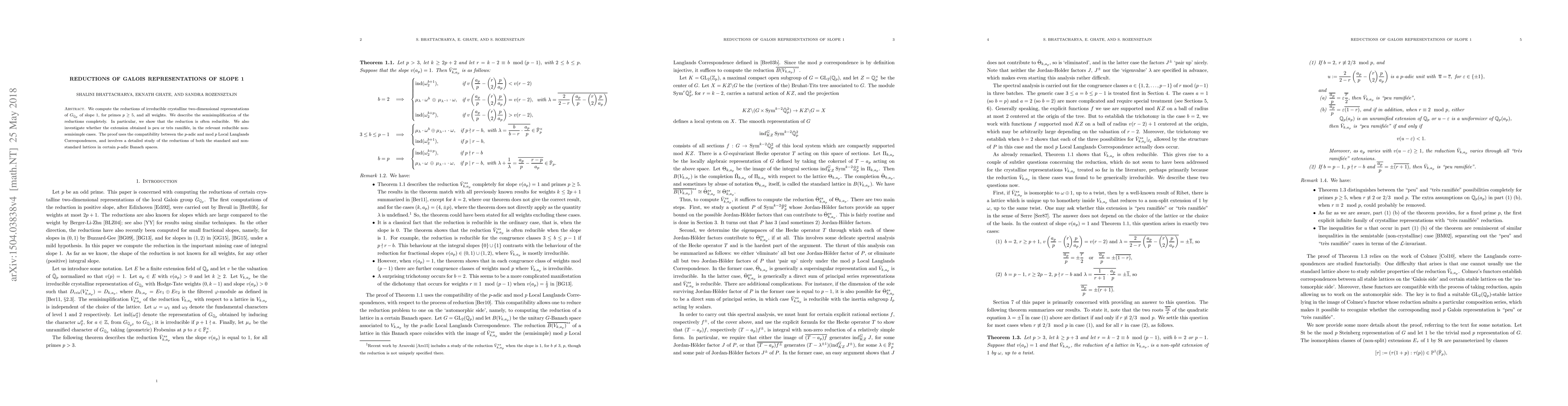 We compute the reductions of irreducible crystalline two-dimensional representations of $G_{\mathbf{Q}_p}$ of slope 1, for primes $p \geq 5$, and all weights. We describe the semisimplification of the reductions completely. In particular, we show that the reduction is often reducible. We also investigate whether the extension obtained is peu or tr\`es ramifi\'ee, in the relevant reducible non-semisimple cases. The proof uses the compatibility between the $p$-adic and mod $p$ Local Langlands Correspondences, and involves a detailed study of the reductions of both the standard and non-standard lattices in certain $p$-adic Banach spaces.
