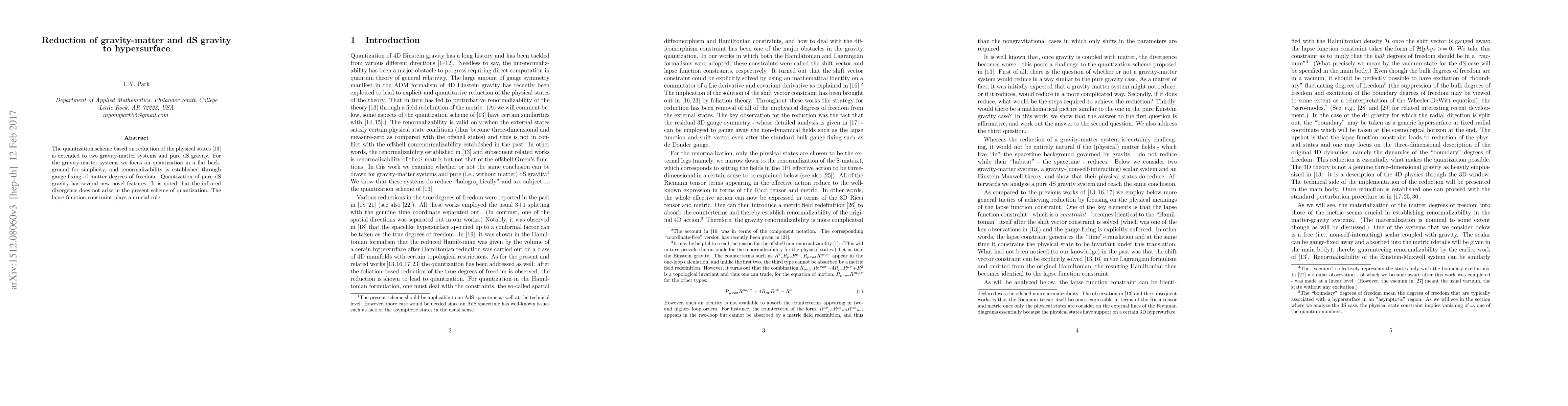 The quantization scheme based on reduction of the physical states \cite{Park:2014tia} is extended to two gravity-matter systems and pure dS gravity. For the gravity-matter systems we focus on quantization in a flat background for simplicity, and renormalizability is established through gauge-fixing of matter degrees of freedom. Quantization of pure dS gravity has several new novel features. It is noted that the infrared divergence does not arise in the present scheme of quantization. The lapse function constraint plays a crucial role.