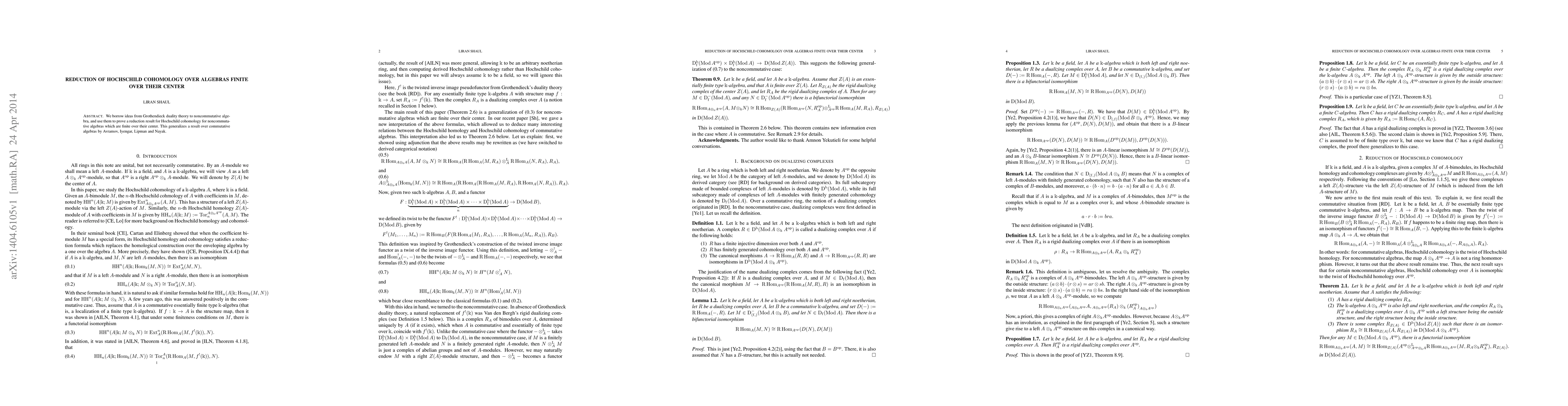 Summary: This paper utilizes Grothendieck duality concepts to demonstrate a reduction theorem for Hochschild cohomology in noncommutative algebras that are finite over their center, generalizing a previous result for commutative algebras by Avramov, Iyengar, Lipman, and Nayak.