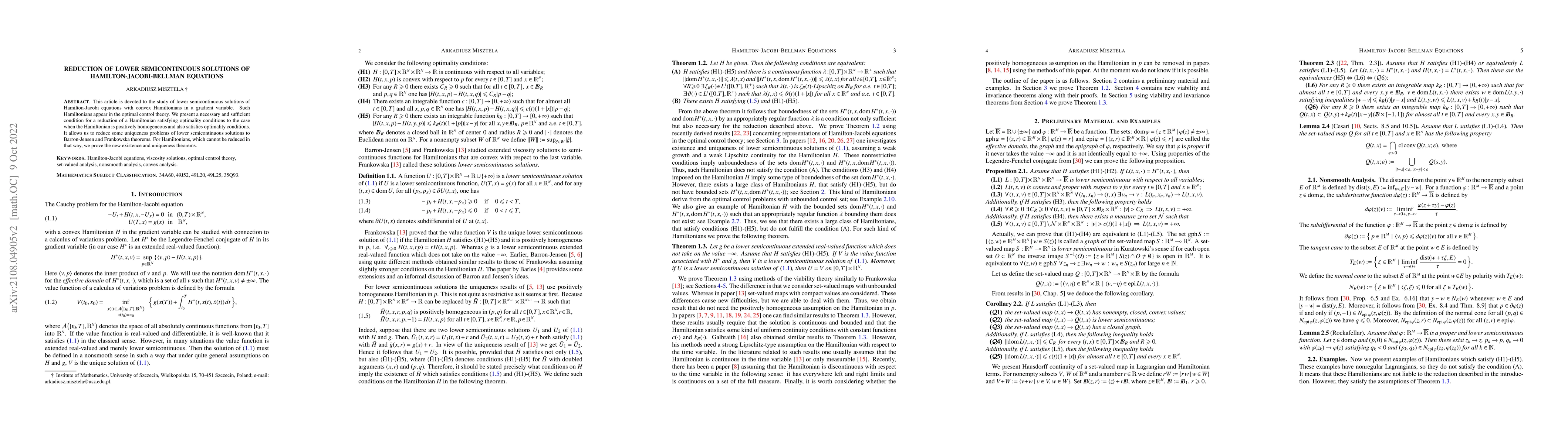 This paper studies lower semicontinuous solutions of Hamilton-Jacobi equations with convex Hamiltonians, presenting a necessary and sufficient condition for reducing such Hamiltonians to positively homogeneous forms while maintaining optimality. It leverages this reduction to apply existing theorems and proves new existence and uniqueness theorems for non-reducible cases.