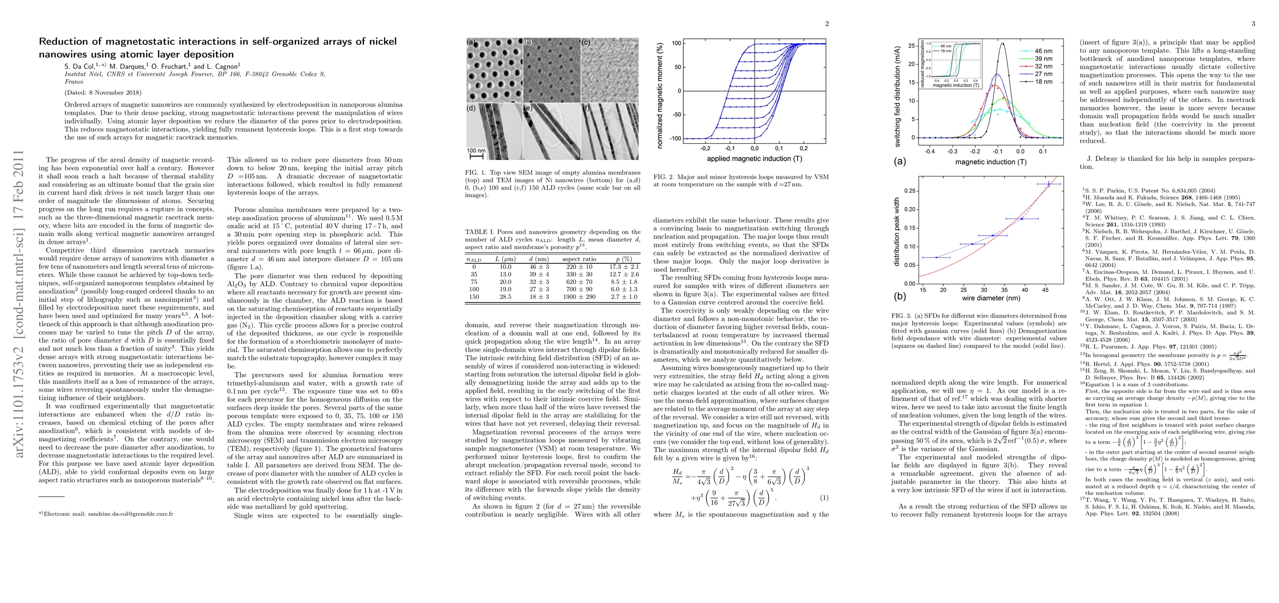 This study demonstrates the reduction of magnetostatic interactions in self-organized nickel nanowire arrays via atomic layer deposition to decrease pore diameter before electrodeposition, achieving fully remanent hysteresis loops and paving the way for magnetic racetrack memory applications.