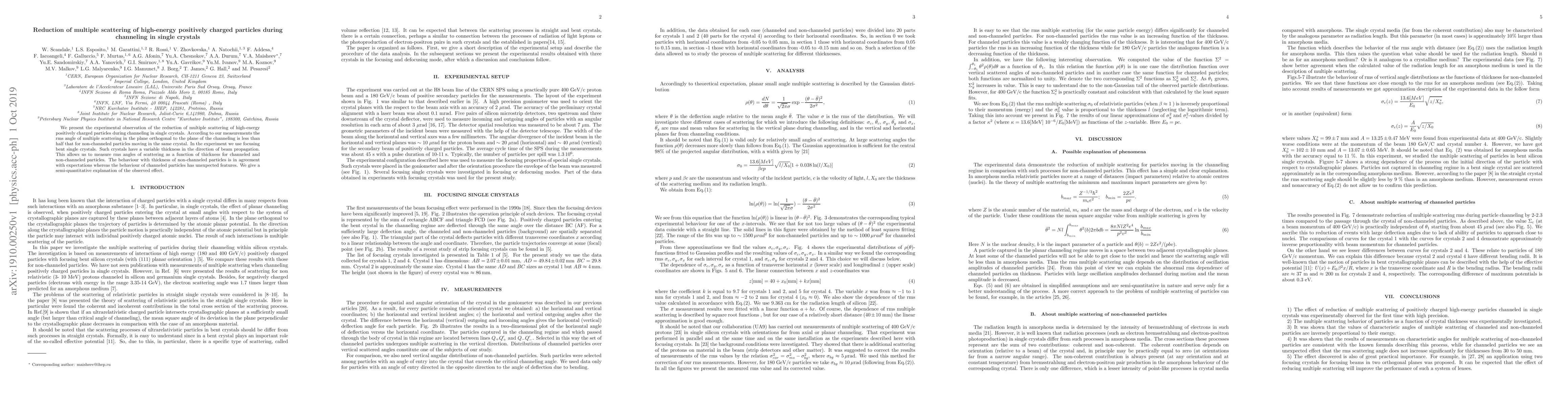 This study experimentally observes a reduction in the multiple scattering of high-energy positively charged particles during channeling in single crystals, with the rms angle of scattering for channeled particles being less than half that of non-channeled particles. The use of focusing bent single crystals with variable thickness reveals unexpected features in the scattering behavior of channeled particles, accompanied by a semi-quantitative explanation for the observed effects.