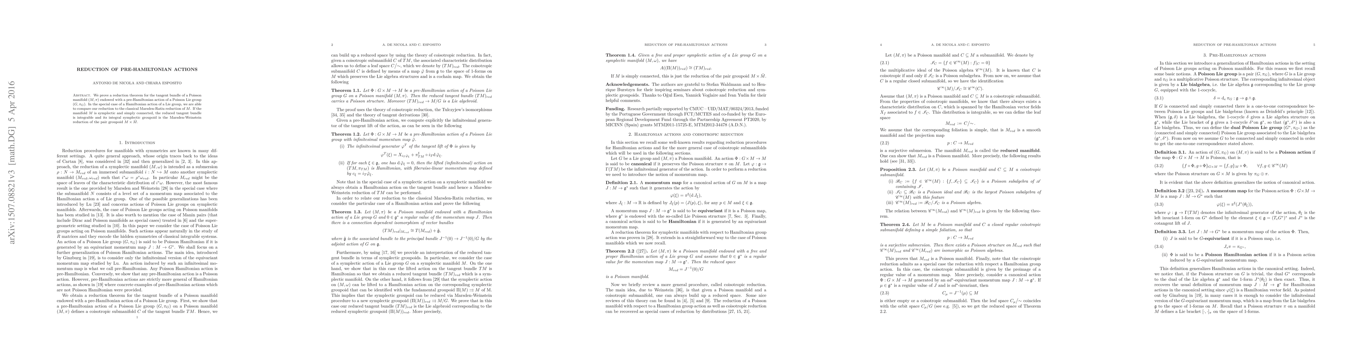 This paper proves a reduction theorem for the tangent bundle of a Poisson manifold with a pre-Hamiltonian action of a Poisson Lie group, comparing it to classical Marsden-Ratiu reduction in the Hamiltonian case. For symplectic, simply connected manifolds, the reduced tangent bundle is shown to be integrable with its integral symplectic groupoid as the Marsden-Weinstein reduction of the pair groupoid.