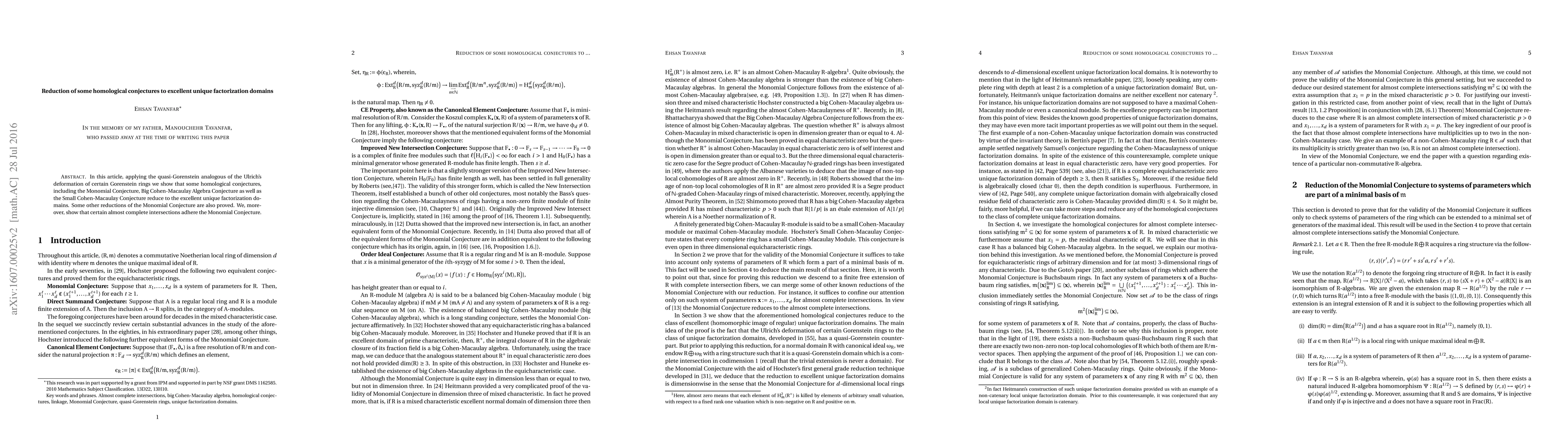 This paper reduces several homological conjectures to excellent unique factorization domains, including the Monomial Conjecture, using a quasi-Gorenstein analogous of Ulrich's deformation of certain Gorenstein rings.