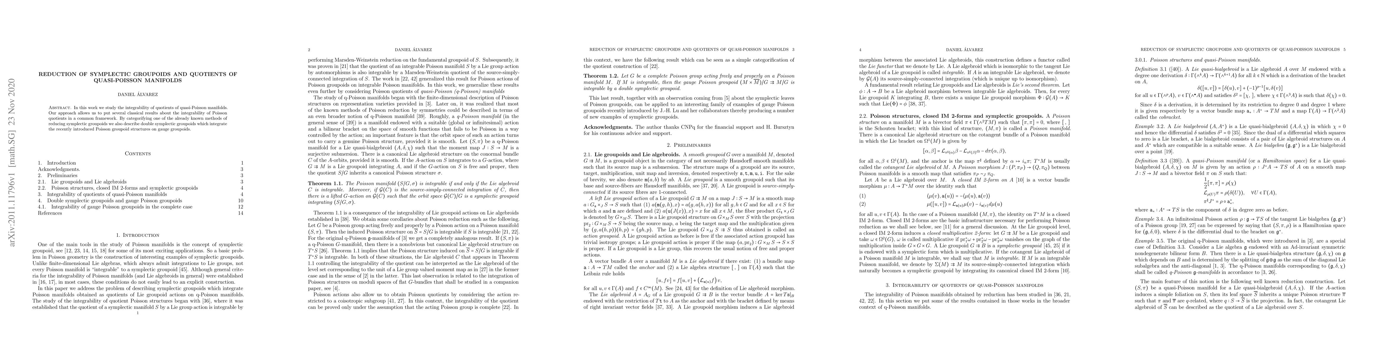 This paper explores the integrability of quotients of quasi-Poisson manifolds, unifying classical results on Poisson quotients within a shared framework. It also introduces double symplectic groupoids to integrate Poisson groupoid structures on gauge groupoids via a novel reduction method.