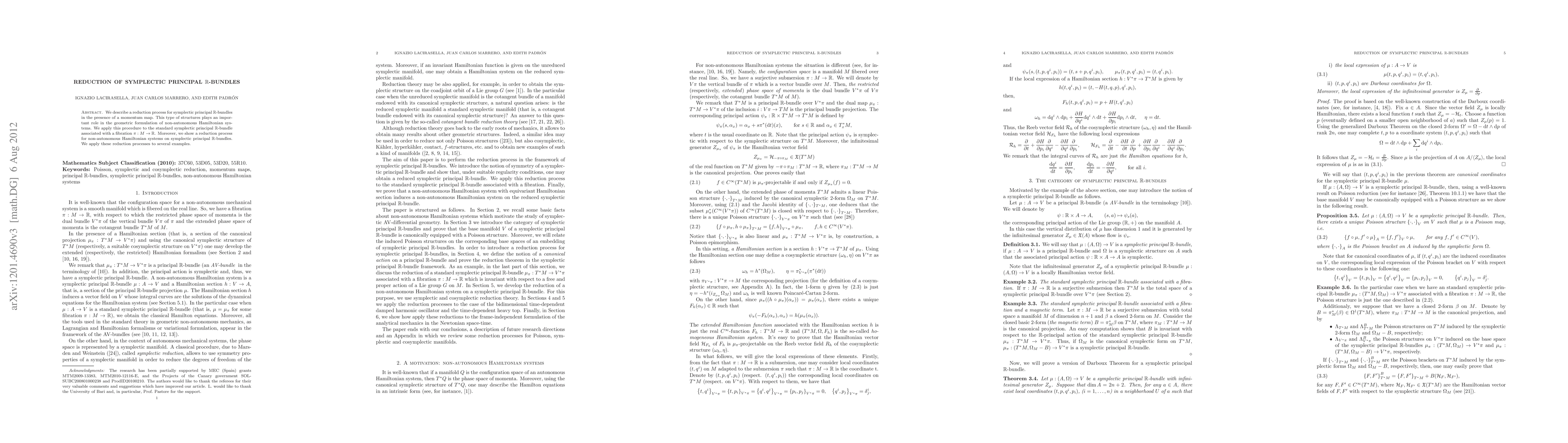 We describe a reduction process for symplectic principal $\mathbb{R}$-bundles in the presence of a momentum map. This type of structures plays an important role in the geometric formulation of non-autonomous Hamiltonian systems. We apply this procedure to the standard symplectic principal $\mathbb{R}$-bundle associated with a fibration $\pi:M\to\mathbb{R}$. When $\pi$ is a principal $G$-bundle and $G_\nu$ denotes the isotropy group associated with an element $\nu$ in the dual to the Lie algebra of $G$, we use the reduction process in order to describe a Poisson structure on the quotient manifold $M/G_\nu$ whose symplectic leaves are isomorphic to the coadjoint orbit $\mathcal{O}_\nu$ . Moreover, we show a reduction process for non-autonomous Hamiltonian systems on symplectic principal $\mathbb{R}$-bundles.