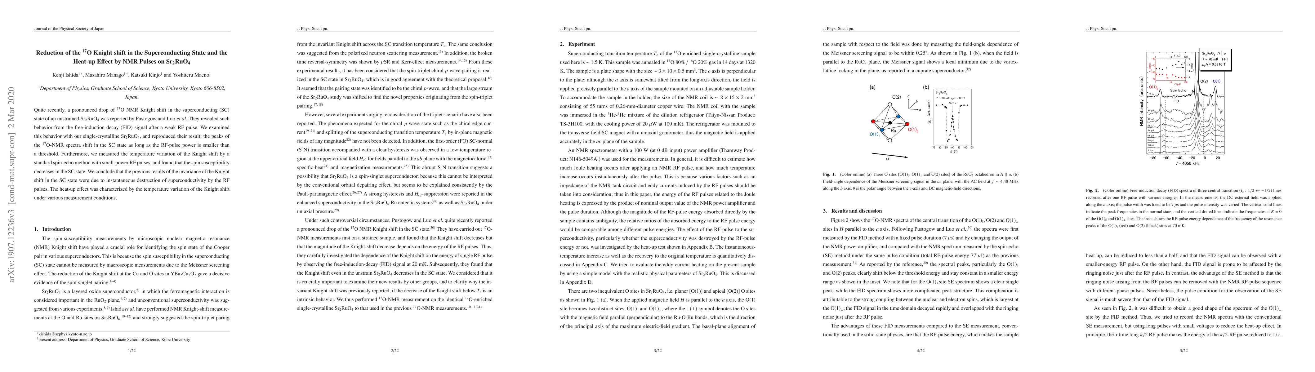 This paper investigates the reduction of $^{17}$O Knight shift in the superconducting state of Sr$_2$RuO_4$ and the heat-up effect caused by NMR pulses. The authors confirm the reported drop in Knight shift with low-power RF pulses and attribute previous findings of invariance to the destruction of superconductivity by stronger RF pulses.