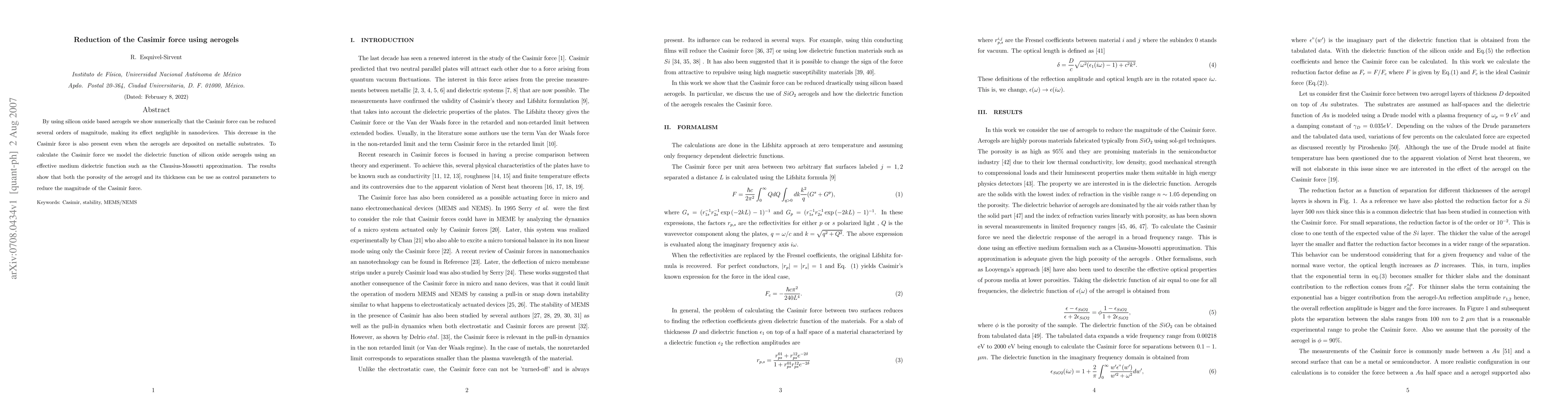 Researchers found that silicon oxide aerogels can significantly reduce the Casimir force in nanodevices, making its effect negligible, and identified porosity and thickness as control parameters for this reduction.