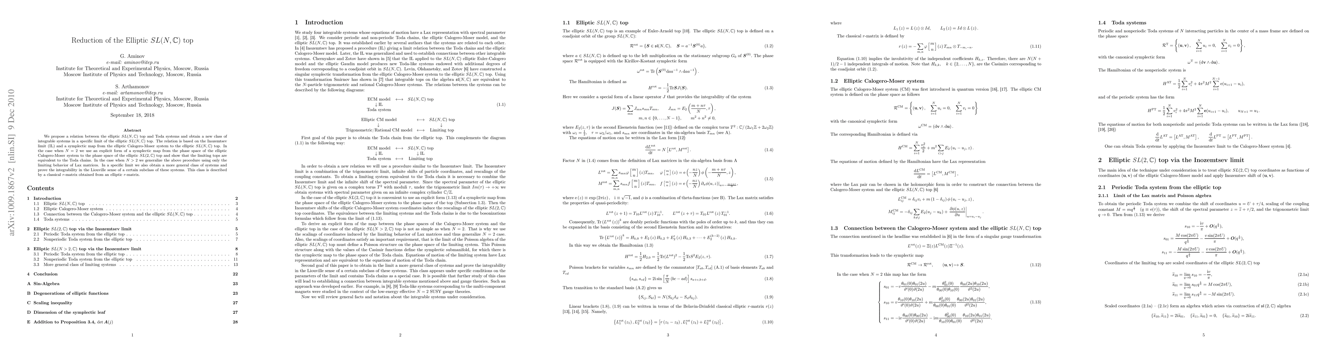 We propose a relation between the elliptic SL(N,C) top and Toda systems and obtain a new class of integrable systems in a specific limit of the elliptic SL(N,C) top. The relation is based on the Inozemtsev limit (IL) and a symplectic map from the elliptic Calogero-Moser system to the elliptic SL(N,C) top. In the case when N=2 we use an explicit form of a symplectic map from the phase space of the elliptic Calogero-Moser system to the phase space of the elliptic SL(2,C) top and show that the limiting tops are equivalent to the Toda chains. In the case when N>2 we generalize the above procedure using only the limiting behavior of Lax matrices. In a specific limit we also obtain a more general class of systems and prove the integrability in the Liouville sense of a certain subclass of these systems. This class is described by a classical r-matrix obtained from an elliptic r-matrix.