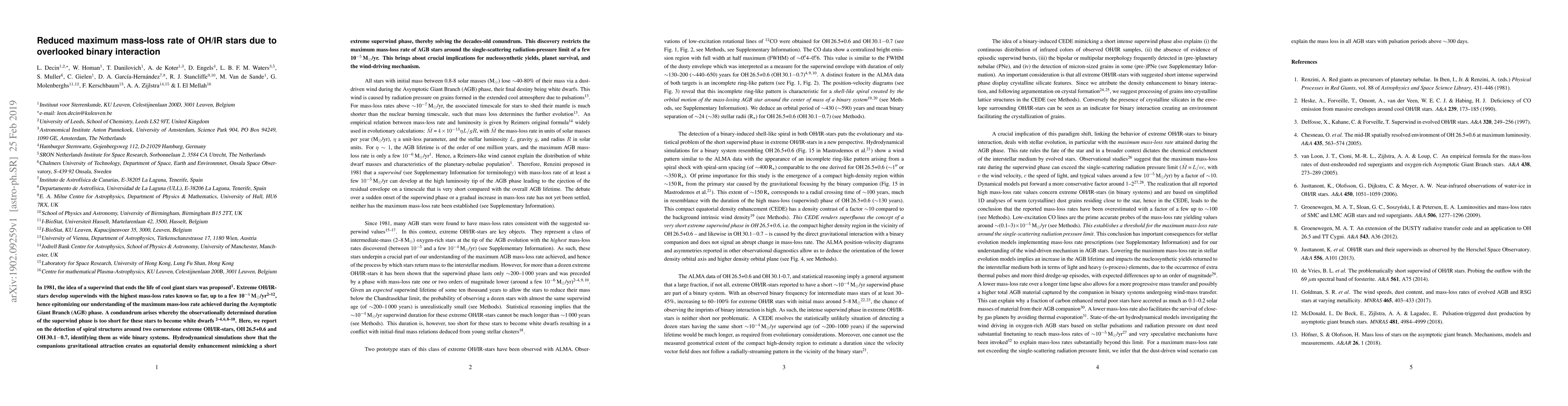 In 1981, the idea of a superwind that ends the life of cool giant stars was proposed. Extreme OH/IR-stars develop superwinds with the highest mass-loss rates known so far, up to a few 10^(-4) Msun/yr, informing our understanding of the maximum mass-loss rate achieved during the Asymptotic Giant Branch (AGB) phase. A condundrum arises whereby the observationally determined duration of the superwind phase is too short for these stars to become white dwarfs. Here, we report on the detection of spiral structures around two cornerstone extreme OH/IR-stars, OH26.5+0.6 and OH30.1-0.7, identifying them as wide binary systems. Hydrodynamical simulations show that the companion's gravitational attraction creates an equatorial density enhancement mimicking a short extreme superwind phase, thereby solving the decades-old conundrum. This discovery restricts the maximum mass-loss rate of AGB stars around the single-scattering radiation-pressure limit of a few 10^(-5) Msun/yr. This brings about crucial implications for nucleosynthetic yields, planet survival, and the wind-driving mechanism.