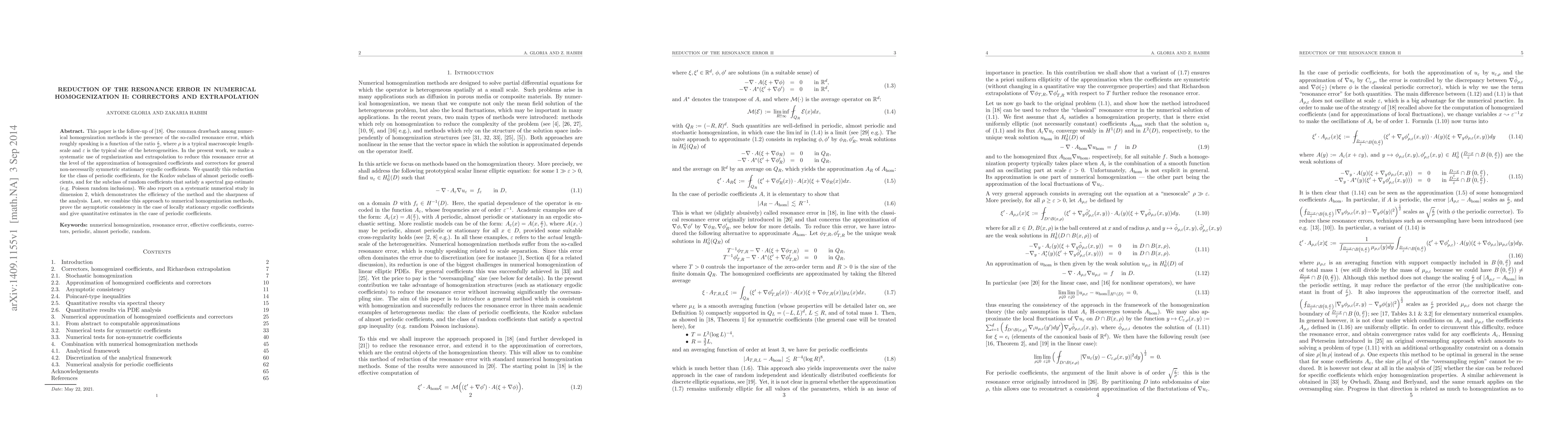 Researchers reduced resonance error in numerical homogenization by using regularization and extrapolation, improving accuracy for periodic, almost-periodic, and random coefficients.