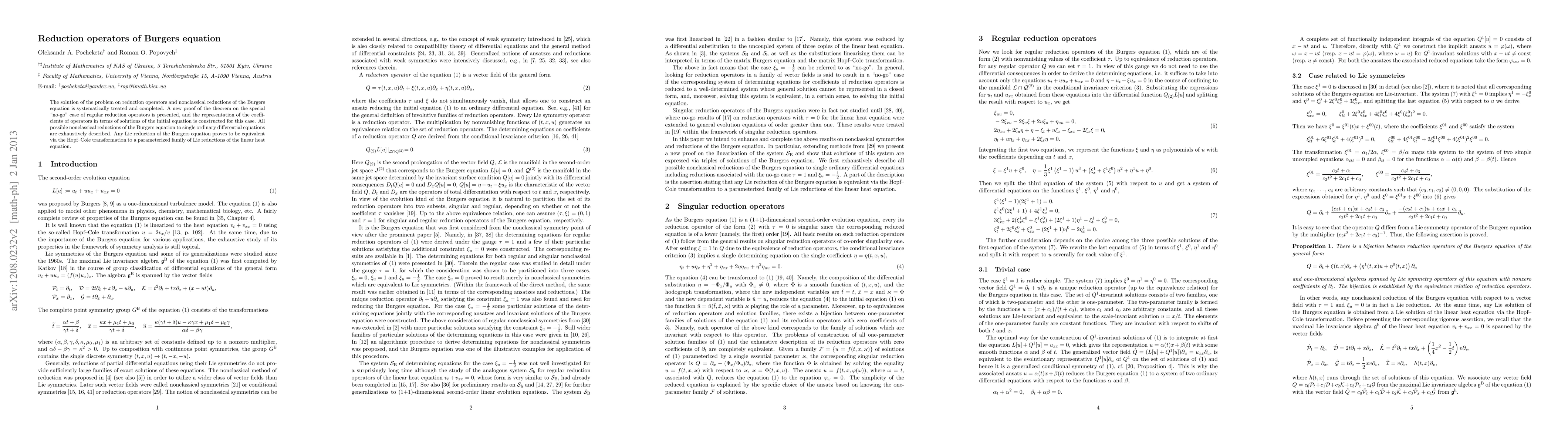 This paper systematically explores the reduction operators of the Burgers equation, presenting a new proof for the "no-go" case of regular reduction operators and constructing representations of operator coefficients in terms of initial equation solutions. It also exhaustively describes all nonclassical reductions and shows equivalence via the Hopf-Cole transformation to Lie reductions of the linear heat equation.