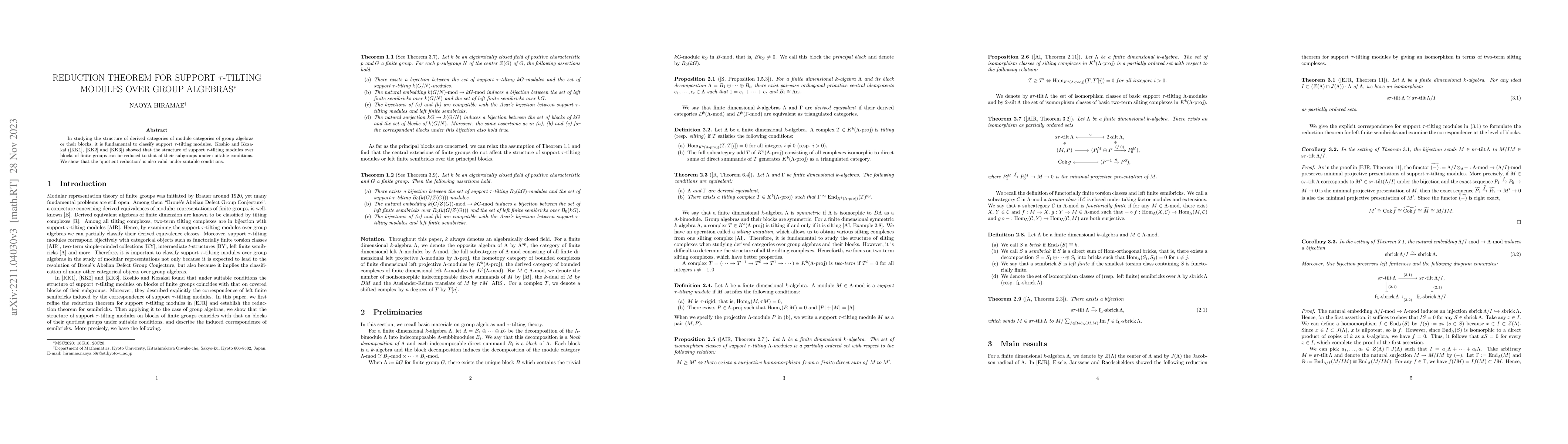 This paper establishes a reduction theorem for support $\tau$-tilting modules over group algebras, demonstrating that under certain conditions, the structure of these modules over a block can be reduced to that of its subgroups. This extends previous work by Koshio and Kozakai on similar reductions.