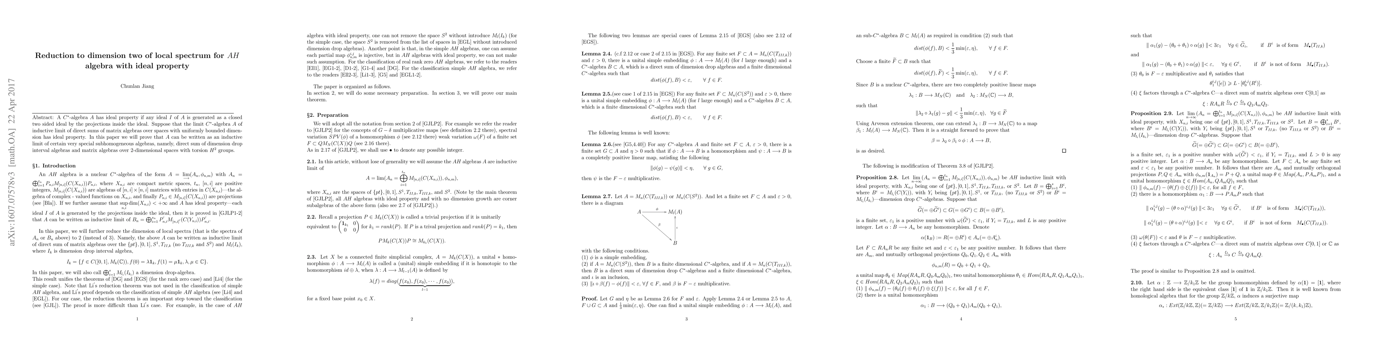 Summary: This paper proves that a $C^{*}$-algebra $A$ with the ideal property, derived from the inductive limit of matrix algebras, can be expressed as an inductive limit of subhomogeneous algebras consisting of direct sums of dimension drop interval algebras and matrix algebras over 2-dimensional spaces with torsion $H^{2}$ groups.