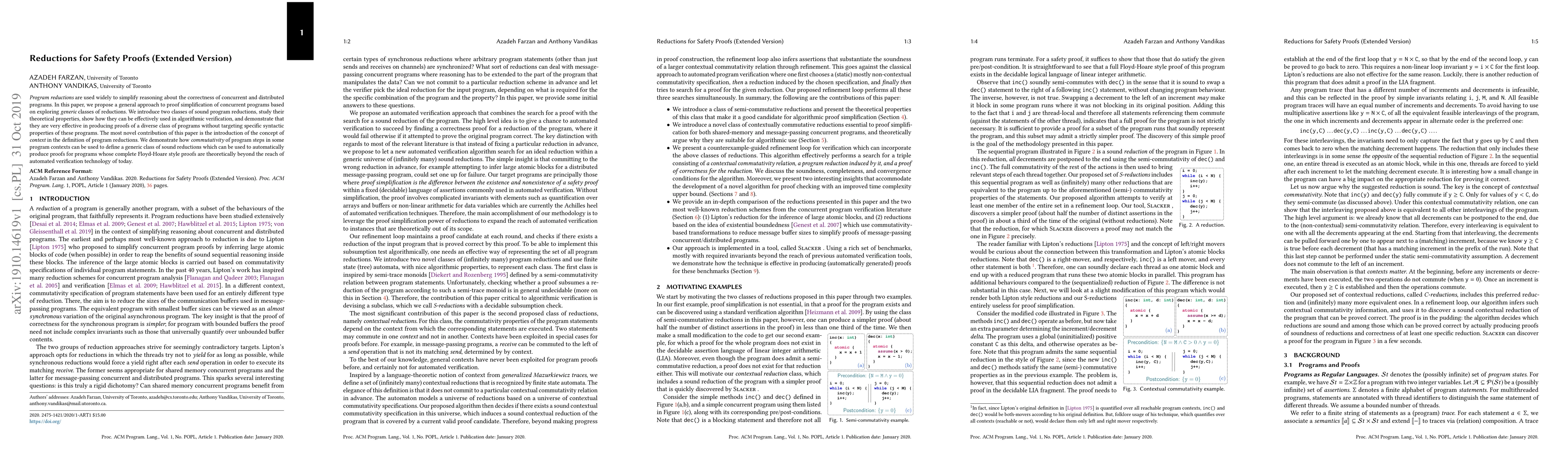 This paper proposes a novel approach to simplify proofs for concurrent programs by exploring generic classes of sound program reductions, introducing the concept of context to define these reductions. It demonstrates that these reductions can automatically generate proofs for programs where traditional verification methods fail, thus enhancing automated verification capabilities.