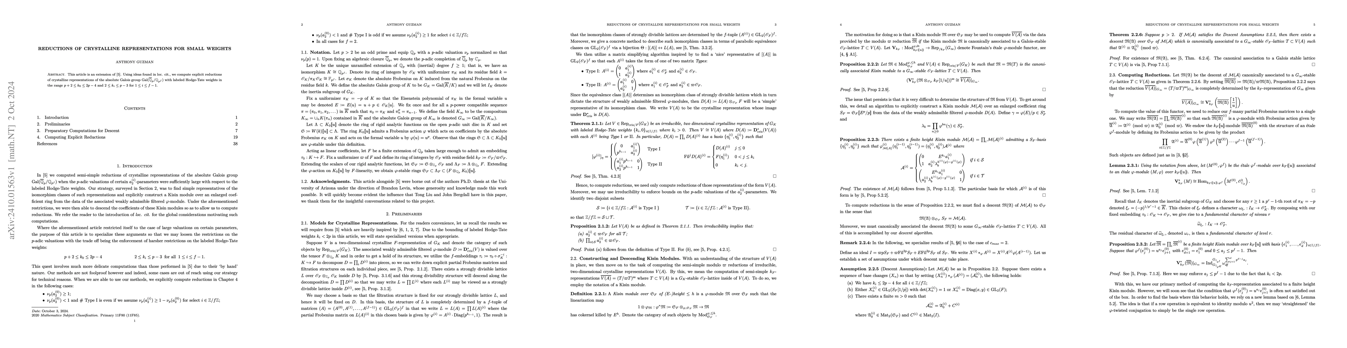 This study provides explicit reductions of crystalline representations associated with the absolute Galois group of $\mathbb{Q}_{p^f}$, focusing on Hodge-Tate weights within specified ranges. The reductions are computed for weights $p+2\le k_{0}\le 2p-4$ and $2\le k_i\le p-3$ for $1\le i\le f-1$.