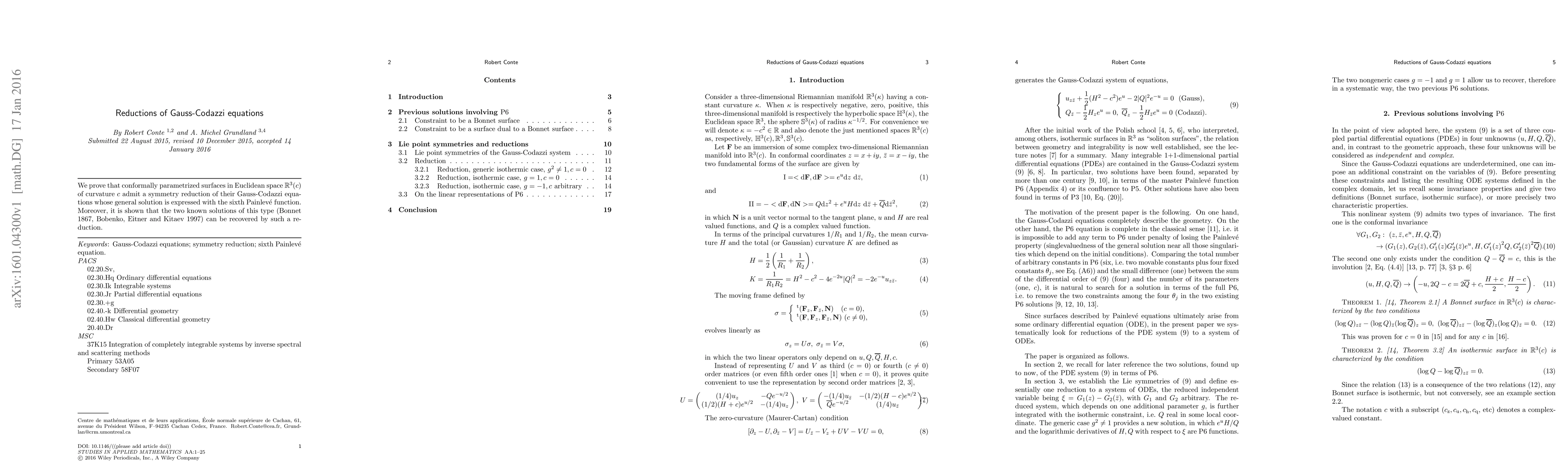 Researchers prove a symmetry reduction of Gauss-Codazzi equations for conformally parametrized surfaces in Euclidean space, leading to solutions expressed with the sixth Painlevé function, recovering two known solutions.