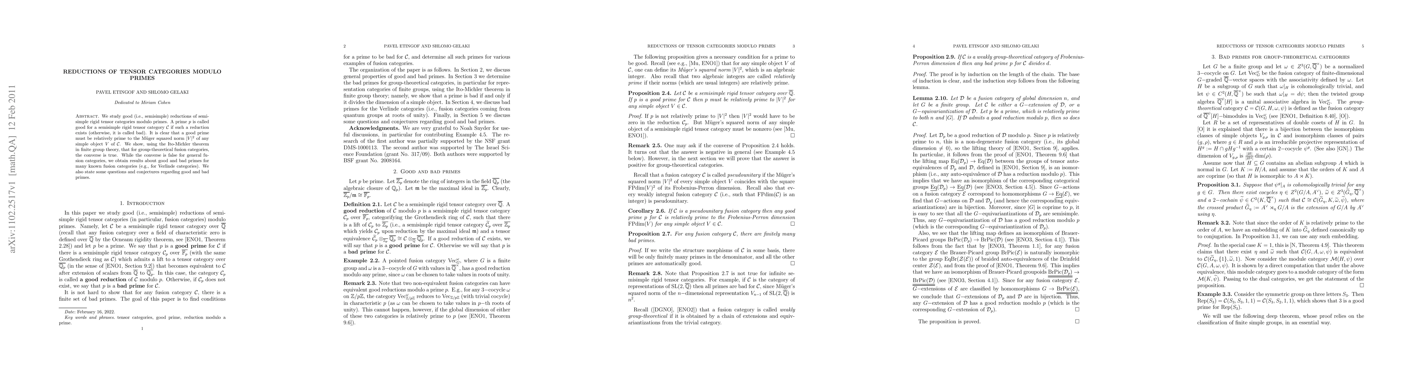 This paper investigates the existence of good reductions of semisimple rigid tensor categories modulo primes, establishing that a prime is good if it is relatively prime to the M\"uger squared norm of any simple object. The authors prove the converse for group-theoretical fusion categories using the Ito-Michler theorem and explore good and bad primes for various known fusion categories.