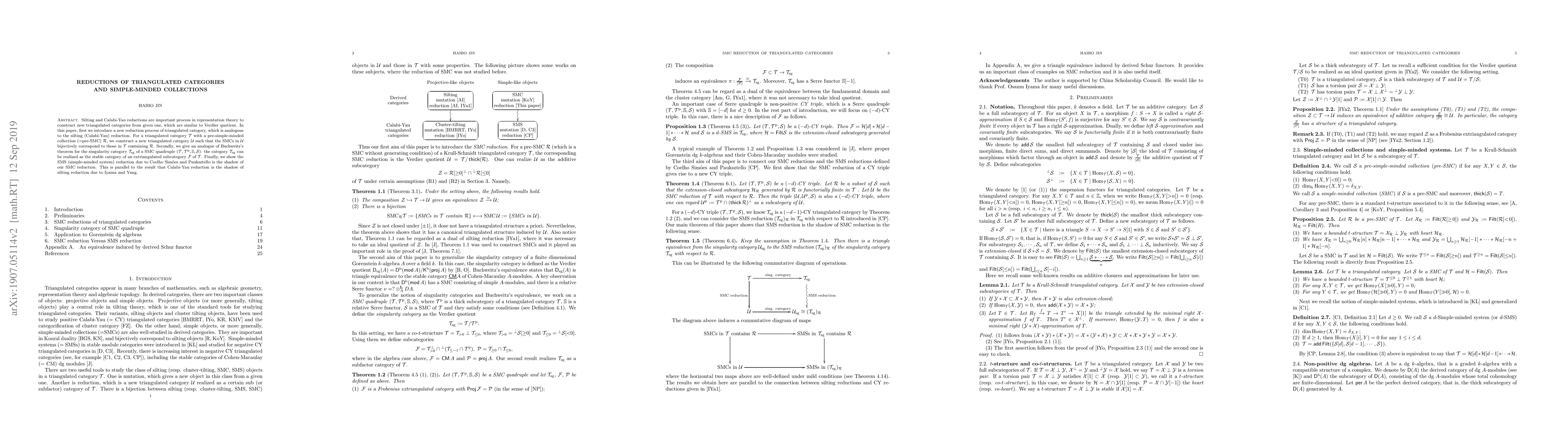 This paper introduces a novel reduction process for triangulated categories that parallels silting and Calabi-Yau reductions, constructing a new category $\cal U$ from a given $\cal T$ with a pre-simple-minded collection $\cal R$. It also establishes an analogue of Buchweitz's theorem for singularity categories and shows that the SMS reduction is a shadow of the newly defined SMC reduction.