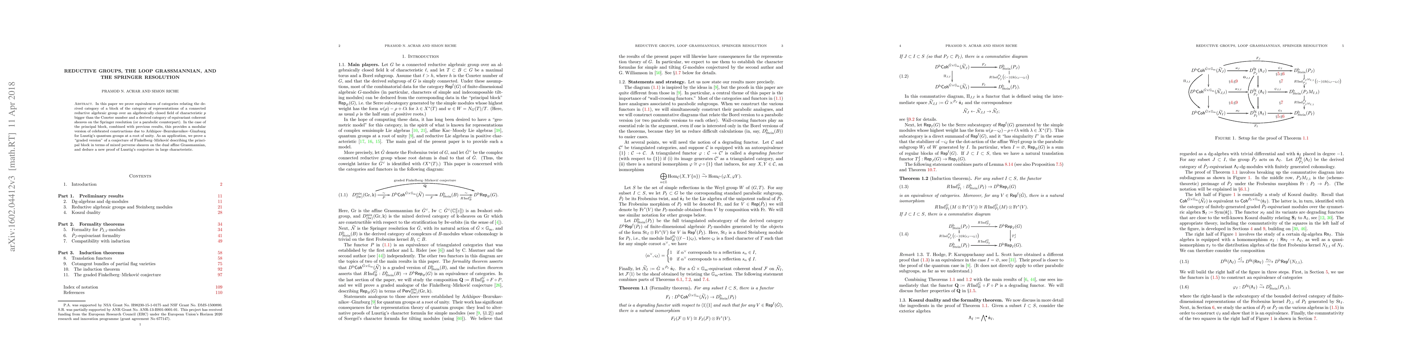 This paper establishes equivalences of categories between the derived category of a block of representations of a reductive algebraic group and the derived category of equivariant coherent sheaves on the Springer resolution, providing a modular version of constructions for Lusztig's quantum groups. It also proves a graded version of a conjecture relating the principal block to mixed perverse sheaves on the dual affine Grassmannian.