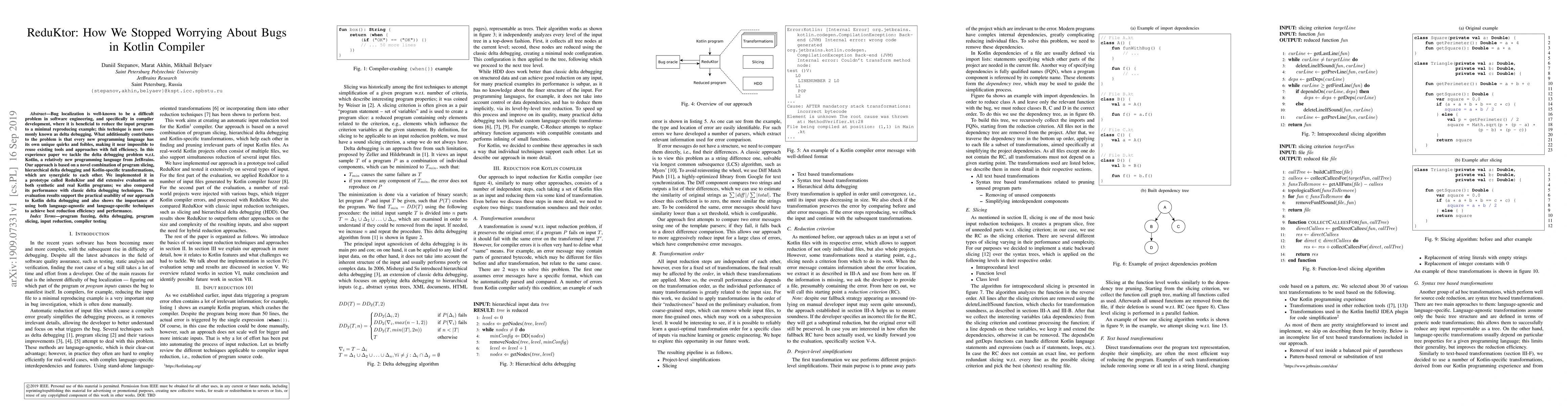 Bug localization is well-known to be a difficult problem in software engineering, and specifically in compiler development, where it is beneficial to reduce the input program to a minimal reproducing example; this technique is more commonly known as delta debugging. What additionally contributes to the problem is that every new programming language has its own unique quirks and foibles, making it near impossible to reuse existing tools and approaches with full efficiency. In this experience paper we tackle the delta debugging problem w.r.t. Kotlin, a relatively new programming language from JetBrains. Our approach is based on a novel combination of program slicing, hierarchical delta debugging and Kotlin-specific transformations, which are synergistic to each other. We implemented it in a prototype called ReduKtor and did extensive evaluation on both synthetic and real Kotlin programs; we also compared its performance with classic delta debugging techniques. The evaluation results support the practical usability of our approach to Kotlin delta debugging and also shows the importance of using both language-agnostic and language-specific techniques to achieve best reduction efficiency and performance.
