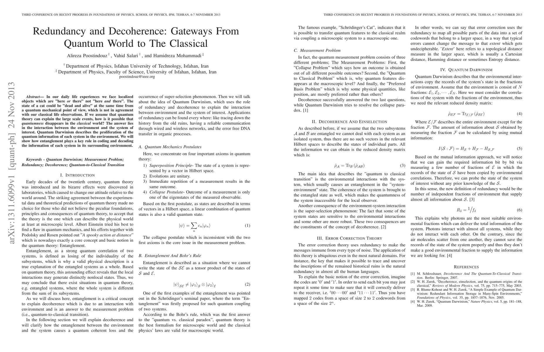 In our daily life experiences we face localized objects which are "here or there" not "here and there". The state of a cat could be "dead and alive" at the same time from a quantum mechanical point of view, which is not in agreement with our classical life observations. If we assume that quantum theory can explain the large scale events, how is it possible that quantumness disappears in the classical world? The answer lies in the interaction between the environment and the system of interest. Quantum Darwinism describes the proliferation of the quantum information of each system in the environment. We will show how entanglement plays a key role in coding and decoding the information of each system in its surrounding environment.