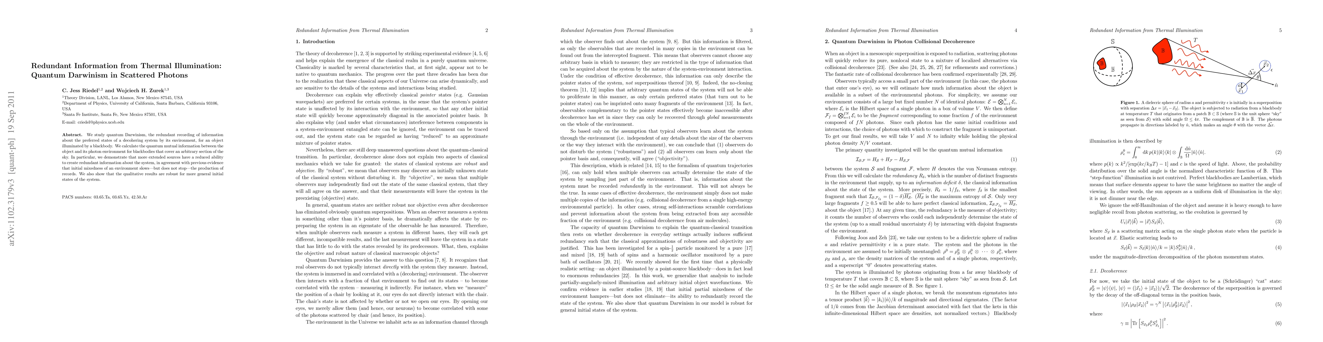 We study quantum Darwinism, the redundant recording of information about the preferred states of a decohering system by its environment, for an object illuminated by a blackbody. We calculate the quantum mutual information between the object and its photon environment for blackbodies that cover an arbitrary section of the sky. In particular, we demonstrate that more extended sources have a reduced ability to create redundant information about the system, in agreement with previous evidence that initial mixedness of an environment slows---but does not stop---the production of records. We also show that the qualitative results are robust for more general initial states of the system.