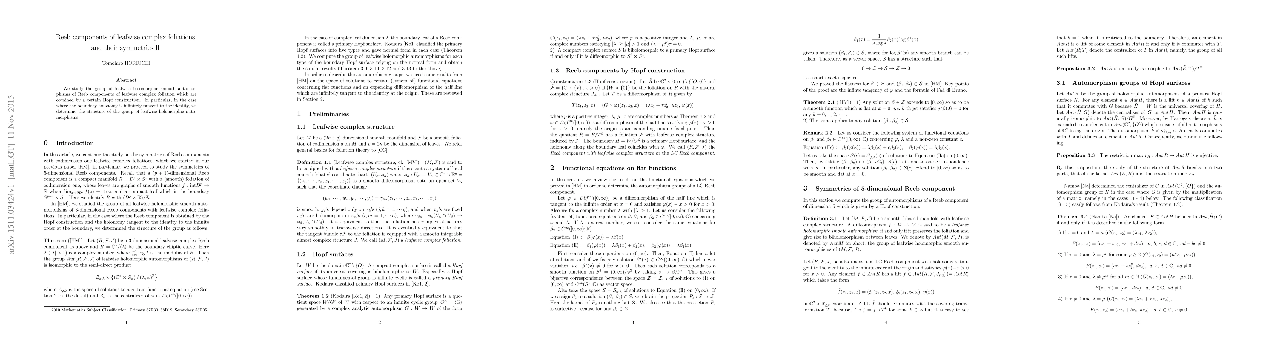 This paper investigates the symmetries of Reeb components within leafwise complex foliations derived from a Hopf construction, focusing on the group of leafwise holomorphic smooth automorphisms when boundary holonomy is infinitely tangent to the identity, determining its structural properties.