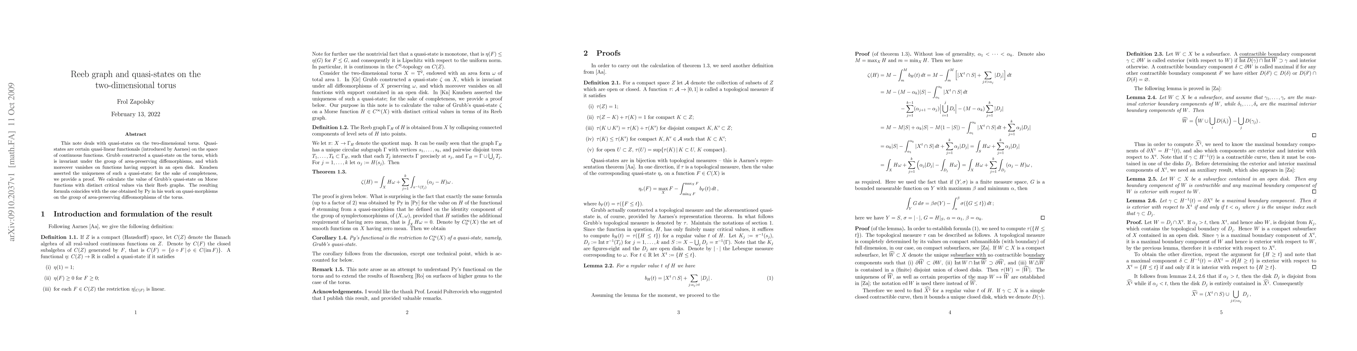 Researchers study quasi-states on a 2D torus, calculating their values for Morse functions via Reeb graphs and confirming an existing formula.
