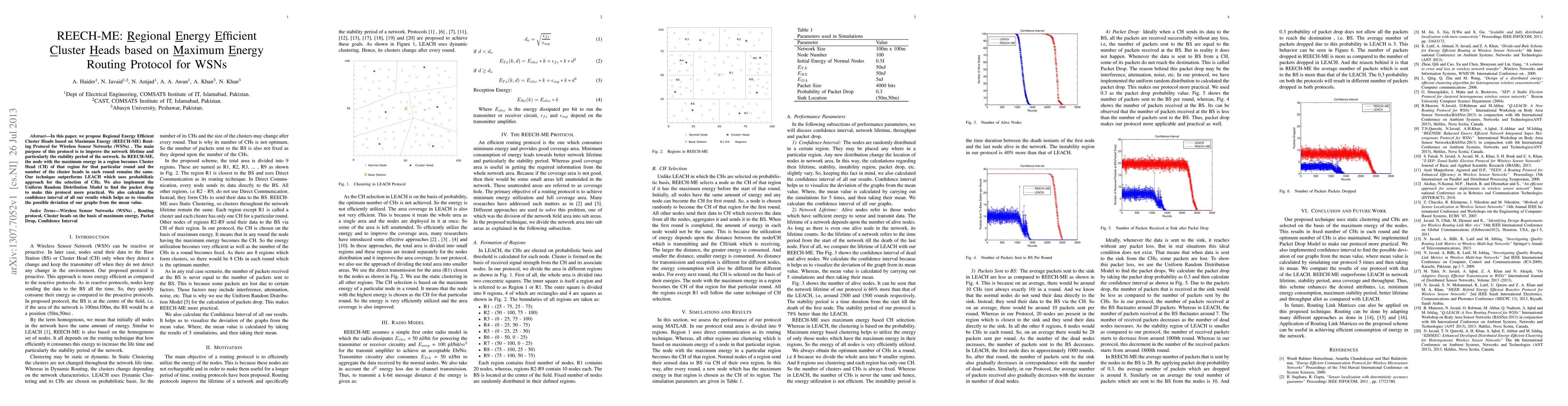 This paper proposes the REECH-ME Routing Protocol to enhance the network lifetime and stability period in Wireless Sensor Networks (WSNs) by selecting the node with maximum energy in a region as the Cluster Head for each round. This method outperforms LEACH and includes a Uniform Random Distribution Model for packet drop analysis.