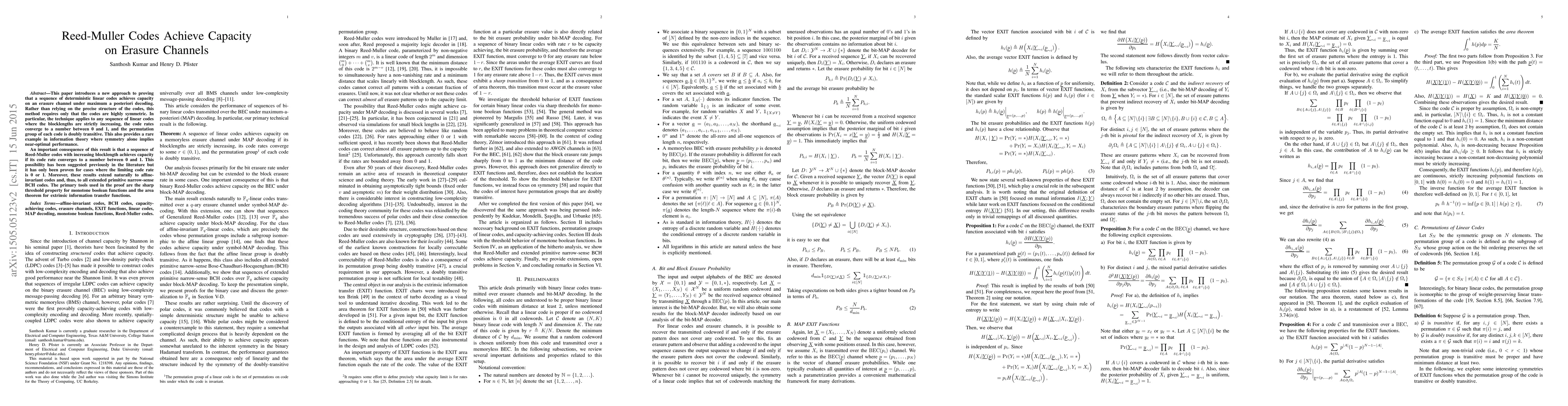This paper demonstrates that a sequence of highly symmetric linear codes, including Reed-Muller codes, achieves capacity on erasure channels under maximum a posteriori decoding, leveraging symmetry rather than specific code structure. The results extend to affine-invariant codes and narrow-sense BCH codes, using the sharp threshold property and area theorem.