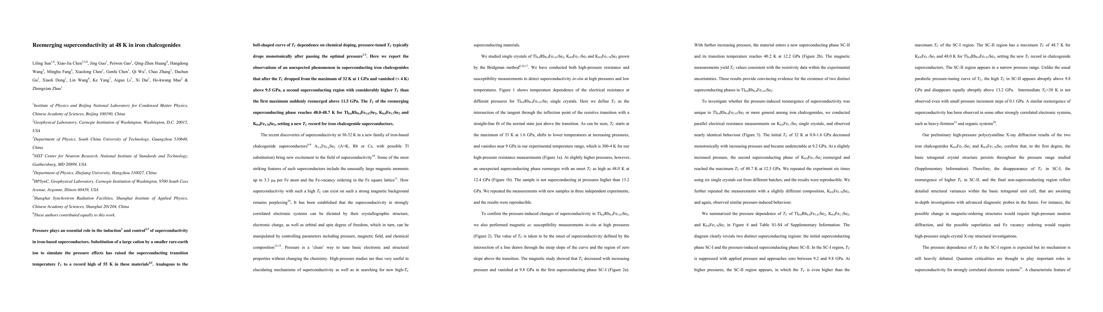 Researchers discovered superconductivity reemerges at 48 K in iron chalcogenides after its destruction under pressure, setting a new record for chalcogenide superconductors. This phenomenon is linked to pressure-induced quantum criticality, suggesting a potential pathway to achieve even higher-temperature superconductivity.
