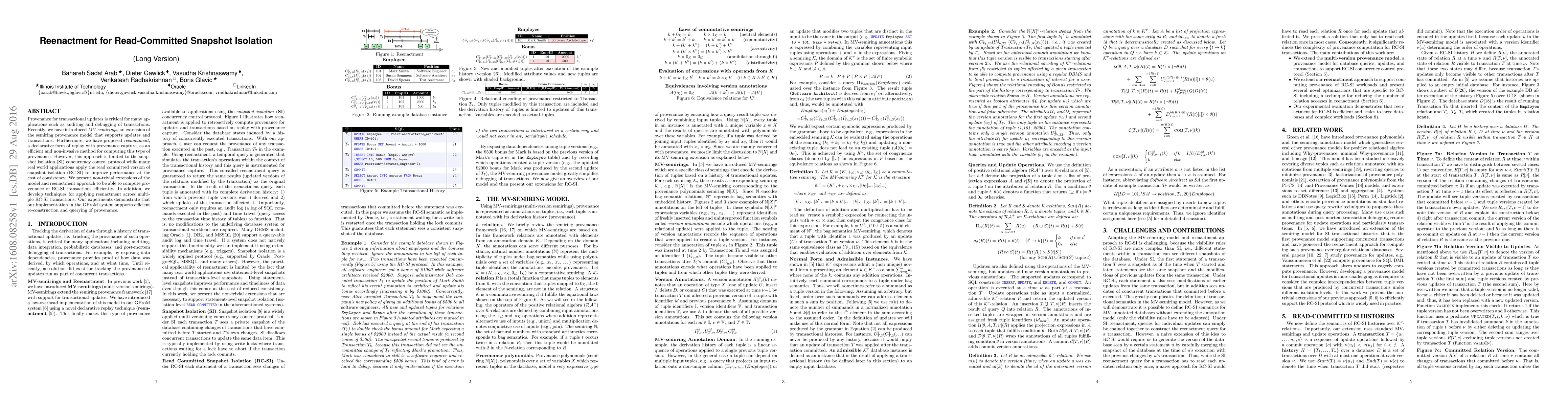 Provenance for transactional updates is critical for many applications such as auditing and debugging of transactions. Recently, we have introduced MV-semirings, an extension of the semiring provenance model that supports updates and transactions. Furthermore, we have proposed reenactment, a declarative form of replay with provenance capture, as an efficient and non-invasive method for computing this type of provenance. However, this approach is limited to the snapshot isolation (SI) concurrency control protocol while many real world applications apply the read committed version of snapshot isolation (RC-SI) to improve performance at the cost of consistency. We present non-trivial extensions of the model and reenactment approach to be able to compute provenance of RC-SI transactions efficiently. In addition, we develop techniques for applying reenactment across multiple RC-SI transactions. Our experiments demonstrate that our implementation in the GProM system supports efficient re-construction and querying of provenance.