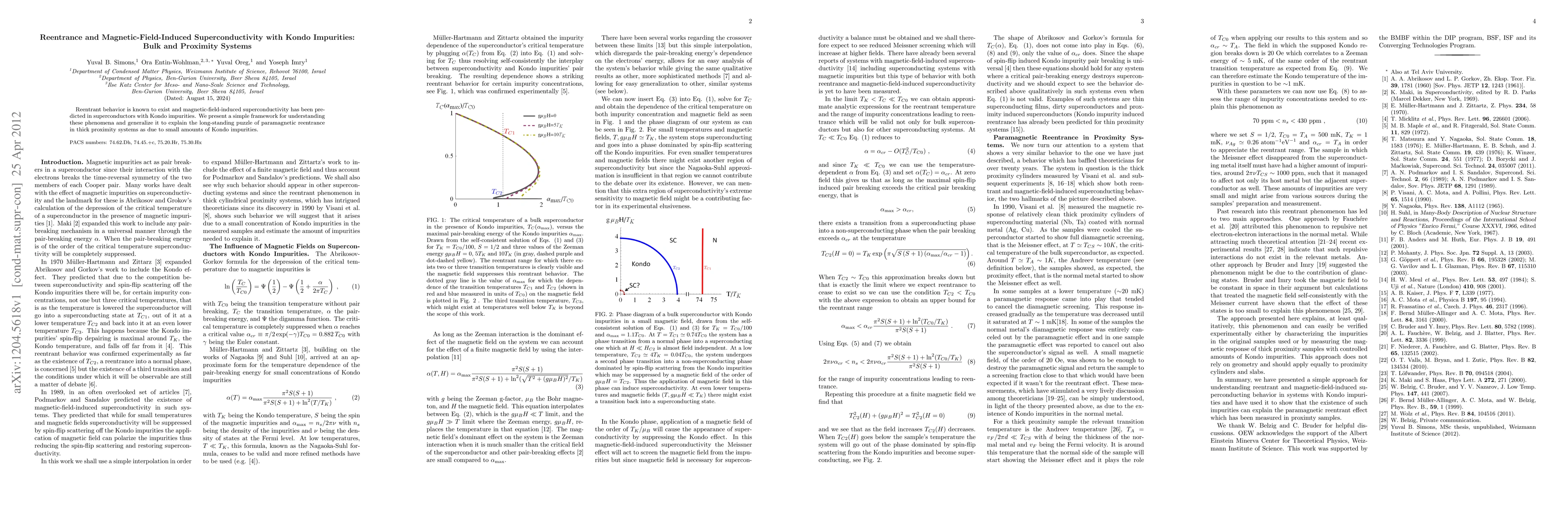 This paper explores reentrant behavior and magnetic-field-induced superconductivity in superconductors containing Kondo impurities, offering a framework to explain these phenomena and addressing the mystery of paramagnetic reentrance in thick proximity systems via the presence of small amounts of Kondo impurities.