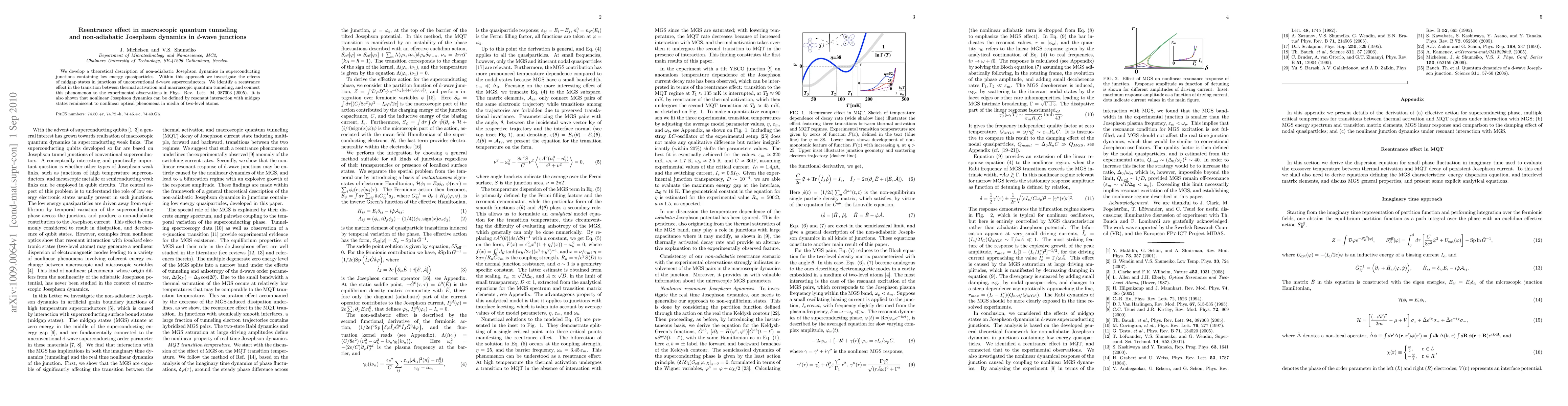 This paper develops a theoretical framework for non-adiabatic Josephson dynamics in d-wave superconducting junctions, identifying a reentrance effect in the transition between thermal activation and macroscopic quantum tunneling. It links this phenomenon to experimental observations and suggests resonant interaction with midgap states can define nonlinear Josephson dynamics.