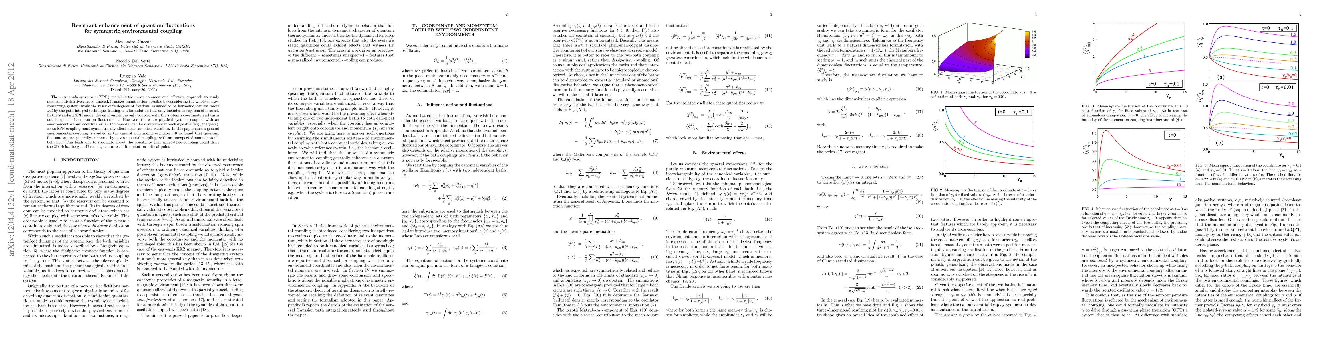 The `system-plus-reservoir' (SPR) model is the most common and effective approach to study quantum dissipative effects. Indeed, it makes quantization possible by considering the whole energy-conserving system, while the reservoir's degrees of freedom, assumed to be harmonic, can be `traced out' by the path-integral technique, leading to a formulation that only includes the system of interest. In the standard SPR model the environment is only coupled with the system's coordinate and turns out to quench its quantum fluctuations. However, there are physical systems coupled with an environment whose `coordinates' and `momenta' can be completely interchangeable (e.g., magnets), so an SPR coupling must symmetrically affect both canonical variables. In this paper such a general environmental coupling is studied in the case of a harmonic oscillator. It is found that quantum fluctuations are generally enhanced by environmental coupling, with an unexpected nonmonotonic behavior. This leads one to speculate about the possibility that spin-lattice coupling could drive the 2D Heisenberg antiferromagnet to reach its quantum-critical point.