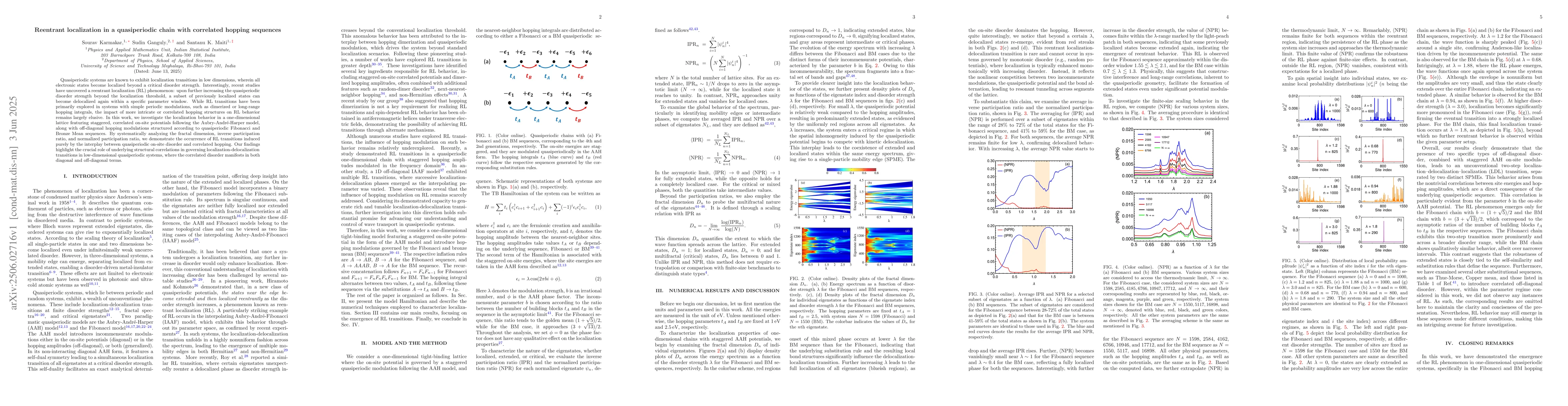 Researchers studied a quasiperiodic chain with correlated hopping sequences to find that increasing disorder strength can lead to a phenomenon called reentrant localization, where previously delocalized states become localized again in a specific range of parameter values.