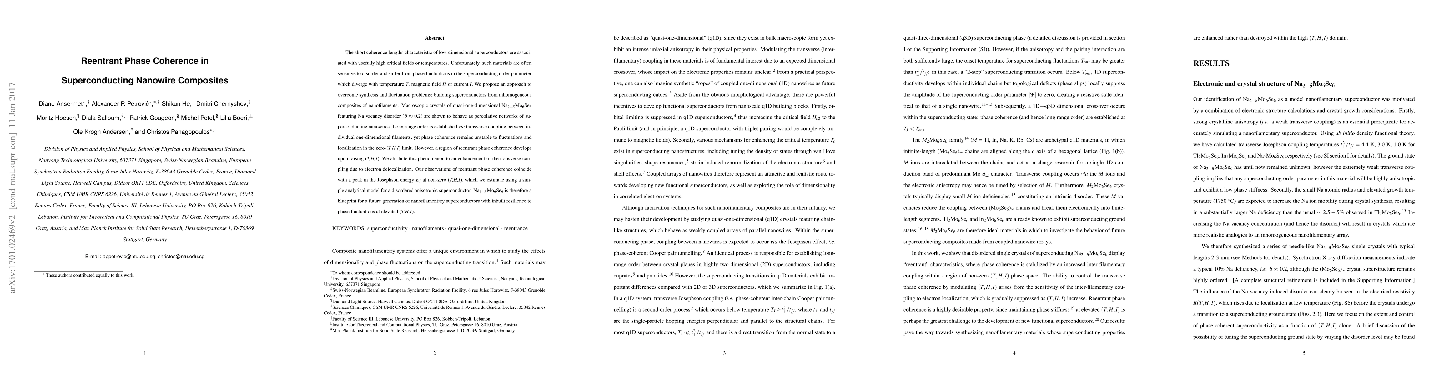 This paper investigates superconducting nanowire composites in Na$_{2-\delta}$Mo$_6$Se$_6$, demonstrating reentrant phase coherence at elevated temperatures, magnetic fields, or currents due to enhanced transverse coupling. The study suggests these composites could lead to more robust superconducting materials resilient to phase fluctuations.