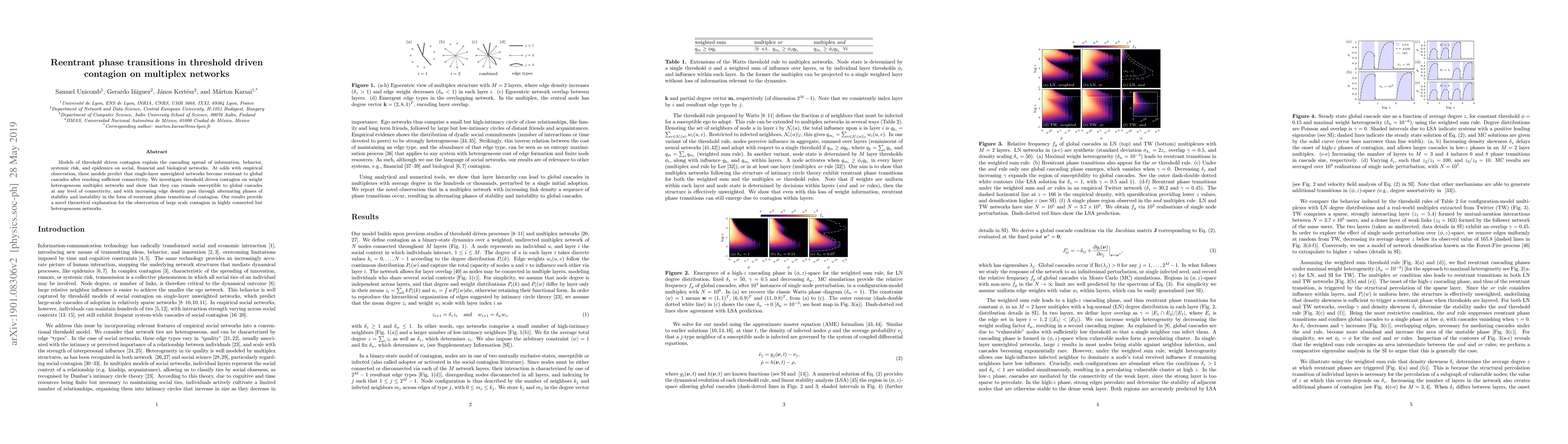 This paper explores threshold driven contagion on multiplex networks, demonstrating that unlike single-layer networks, these heterogeneous networks can experience reentrant phase transitions that alternate between stability and instability, thereby explaining large-scale contagion in highly connected networks.