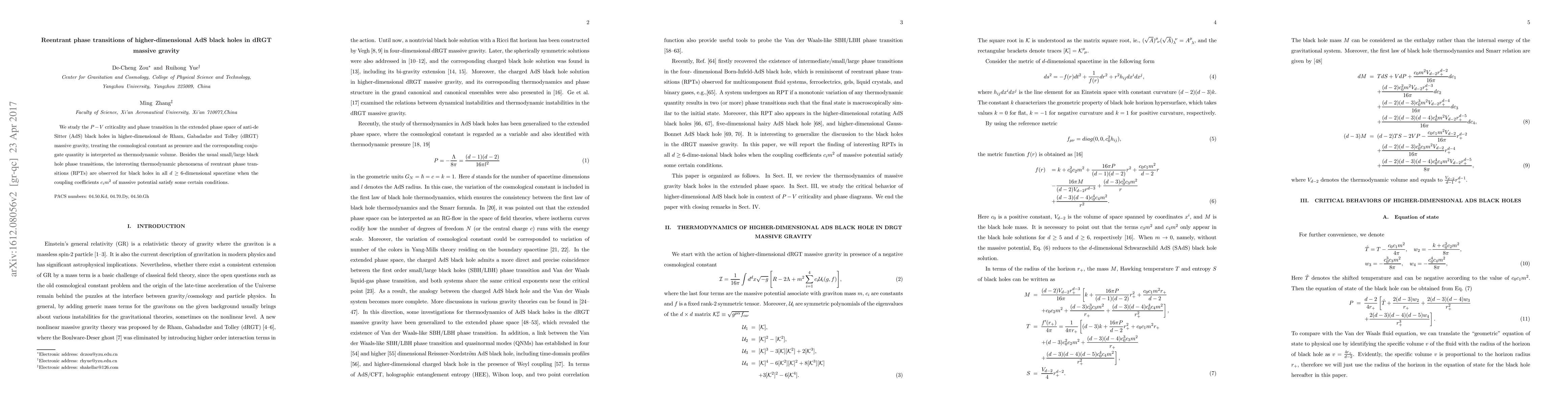 This paper investigates thermodynamic properties of higher-dimensional AdS black holes in dRGT massive gravity, identifying $P-V$ criticality and phase transitions, including rare reentrant phase transitions (RPTs) in $d\geq6$ dimensions under specific conditions on coupling coefficients.