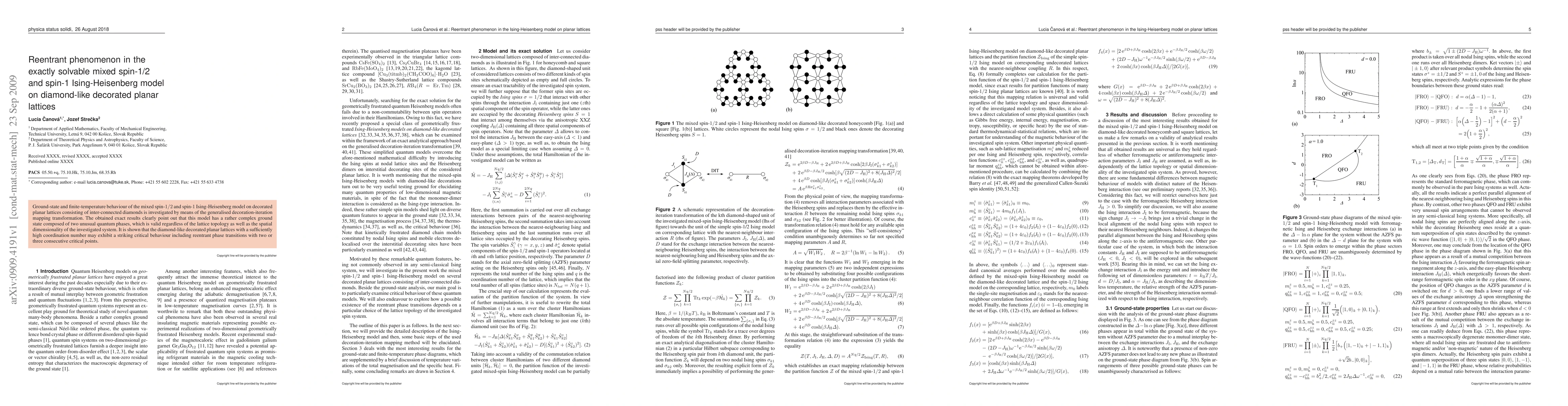 This paper investigates the mixed spin-1/2 and spin-1 Ising-Heisenberg model on diamond-like decorated planar lattices, revealing a complex ground state with two distinct quantum phases. The study uncovers reentrant phase transitions with multiple critical points, demonstrating the model's intricate critical behavior.