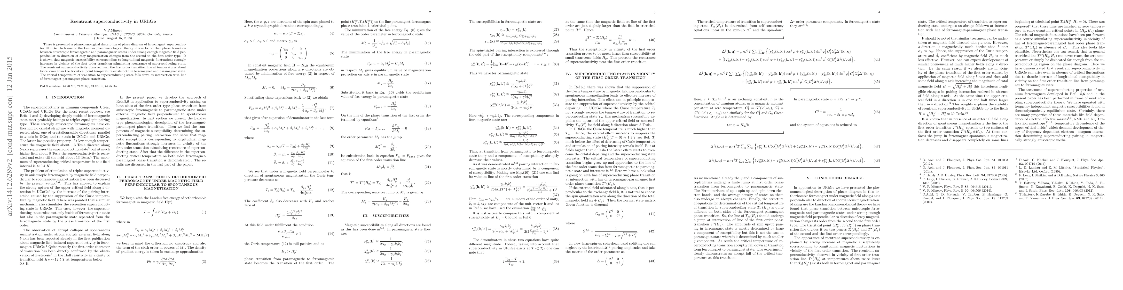 Researchers describe reentrant superconductivity in URhGe metal, where a ferromagnetic state transitions to a paramagnetic one at high magnetic fields, leading to increased superconducting temperature.