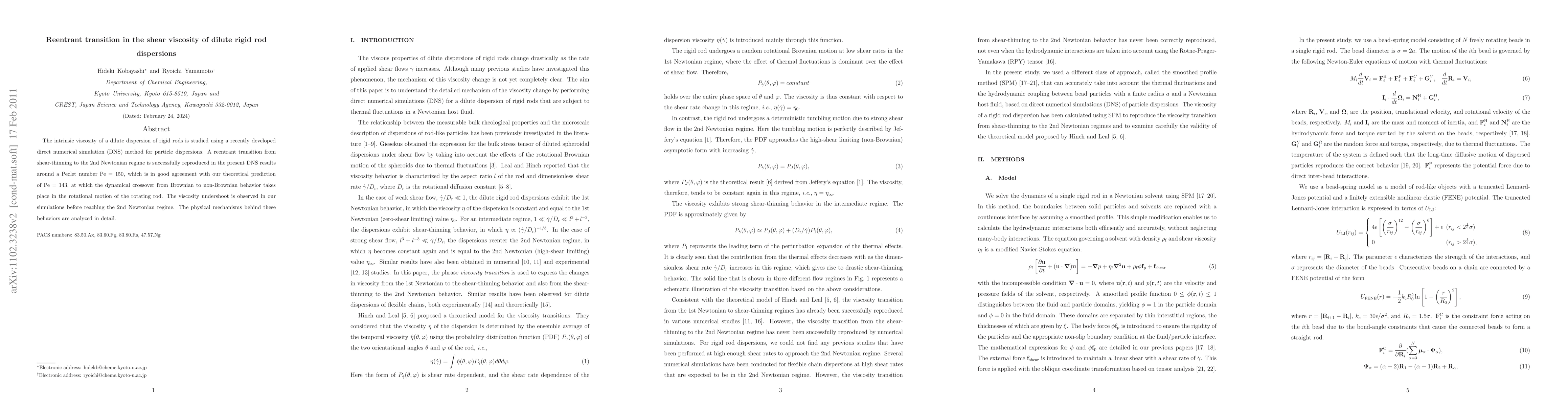 The paper uses direct numerical simulation to study the shear viscosity of dilute rigid rod dispersions, successfully reproducing a reentrant transition from shear-thinning to the 2nd Newtonian regime around a Peclet number Pe=150, in line with theoretical prediction. The study observes a viscosity undershoot before reaching the 2nd Newtonian regime, analyzing the underlying physical mechanisms.