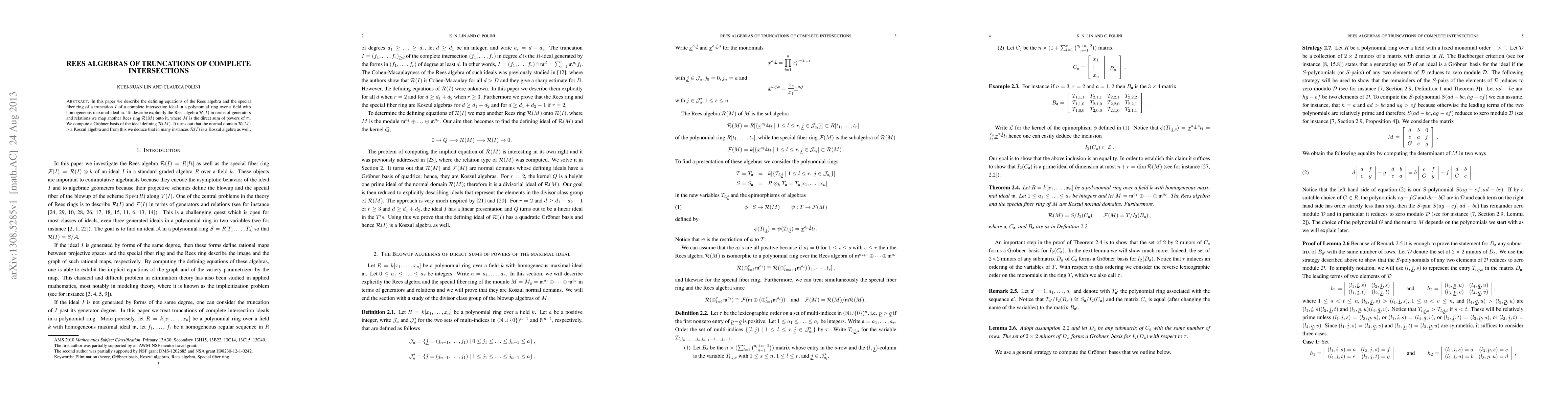 In this paper we describe the defining equations of the Rees algebra and the special fiber ring of a truncation I of a complete intersection ideal in a polynomial ring over a field with homogeneous maximal ideal m. To describe explicitly the Rees algebra R(I) in terms of generators and relations we map another Rees ring R(M) onto it, where M is the direct sum of powers of m. We compute a Groebner basis of the ideal defining R(M). It turns out that the normal domain R(M) is a Koszul algebra and from this we deduce that in many instances R(I) is a Koszul algebra as well.