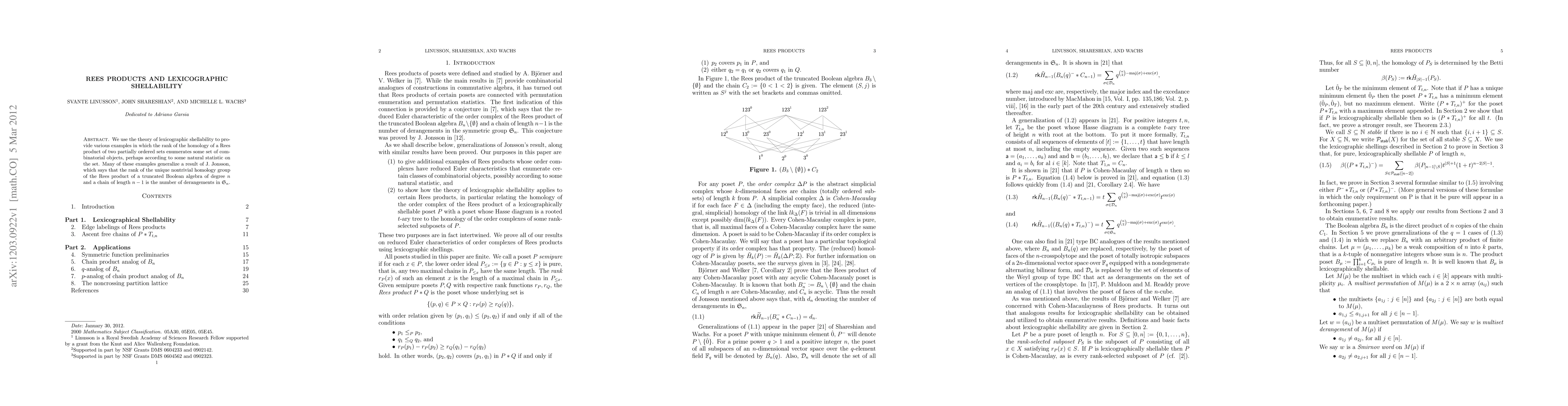 This paper explores the use of lexicographic shellability to illustrate how the rank of the homology of Rees products of partially ordered sets corresponds to certain combinatorial objects, extending a result by J. Jonsson that connects the homology rank of such products to the number of derangements in symmetric groups.
