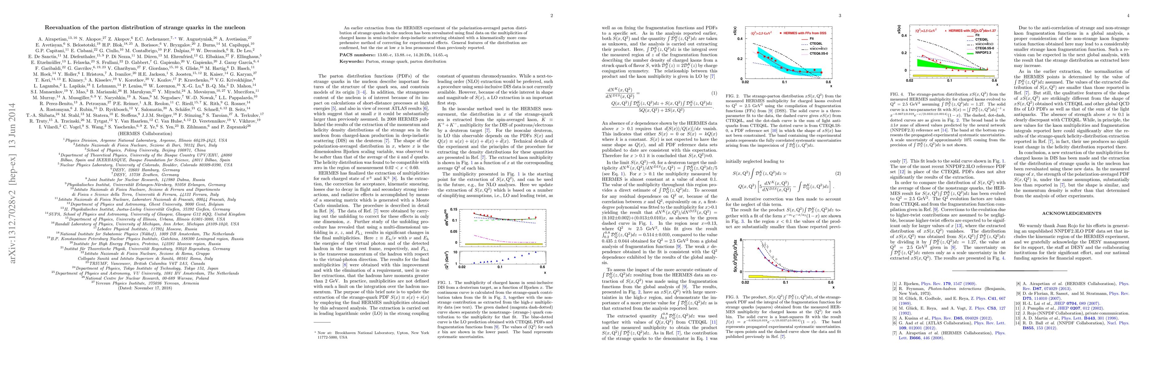 This paper reevaluates the strange quark parton distribution in nucleons using updated data from the HERMES experiment, confirming general features but showing a less pronounced rise at low x compared to earlier reports.