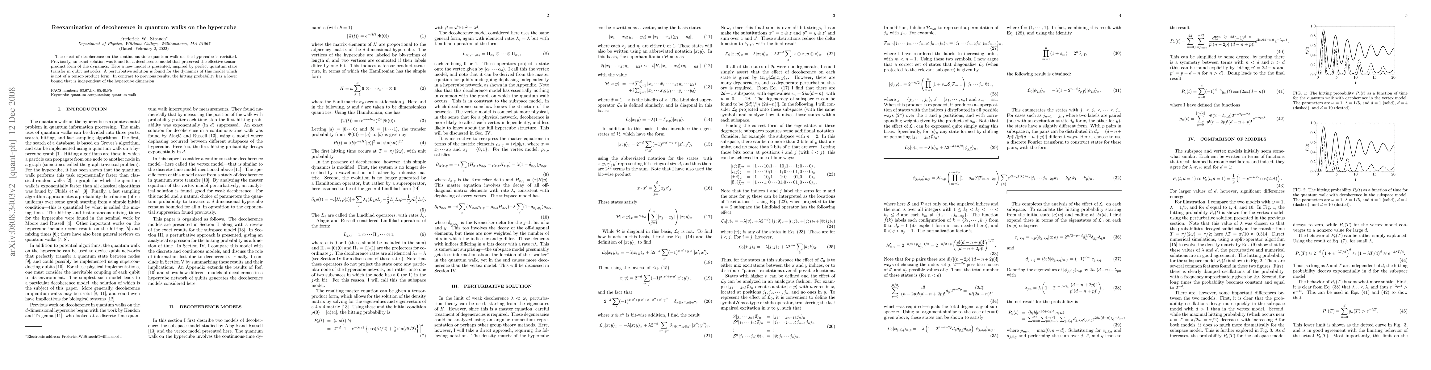 The effect of decoherence on the continuous-time quantum walk on the hypercube is revisited. Previously, an exact solution was found for a decoherence model that preserved the effective tensor-product form of the dynamics. Here a new model is presented, inspired by perfect quantum state transfer in qubit networks. A perturbative solution is found for the dynamics of this model which is not of a tensor-product form. In contrast to previous results, the hitting probability has a lower bound that is independent of the hypercube dimension.