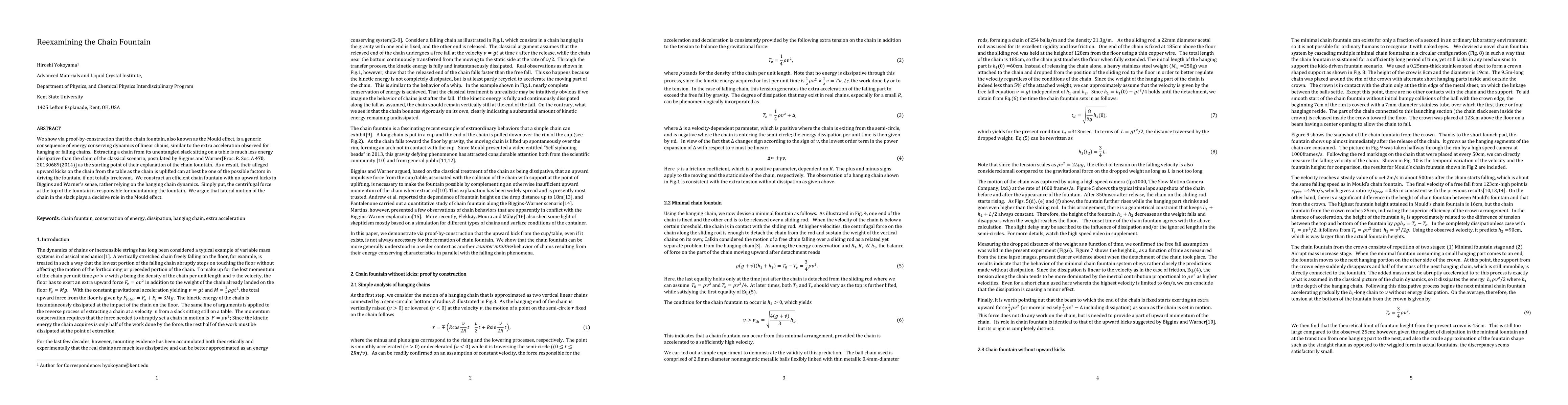 We show via proof-by-construction that the chain fountain, also known as the Mould effect, is a generic consequence of energy conserving dynamics of linear chains, similar to the extra acceleration observed for hanging or falling chains. Extracting a chain from its unentangled slack sitting on a table is much less energy dissipative than the claim of the classical scenario, postulated by Biggins and Warner [Proc. R. Soc. A 470, 20130689(2014)] as the starting point of their explanation of the chain fountain. As a result, their alleged upward kicks on the chain from the table as the chain is uplifted can at best be one of the possible factors in driving the fountain, if not totally irrelevant. We construct an efficient chain fountain with no upward kicks in Biggins and Warner\'s sense, rather relying on the hanging chain dynamics. Simply put, the centrifugal force at the top of the fountain is responsible for maintaining the fountain. We argue that lateral motion of the chain in the slack plays a decisive role in the Mould effect.
